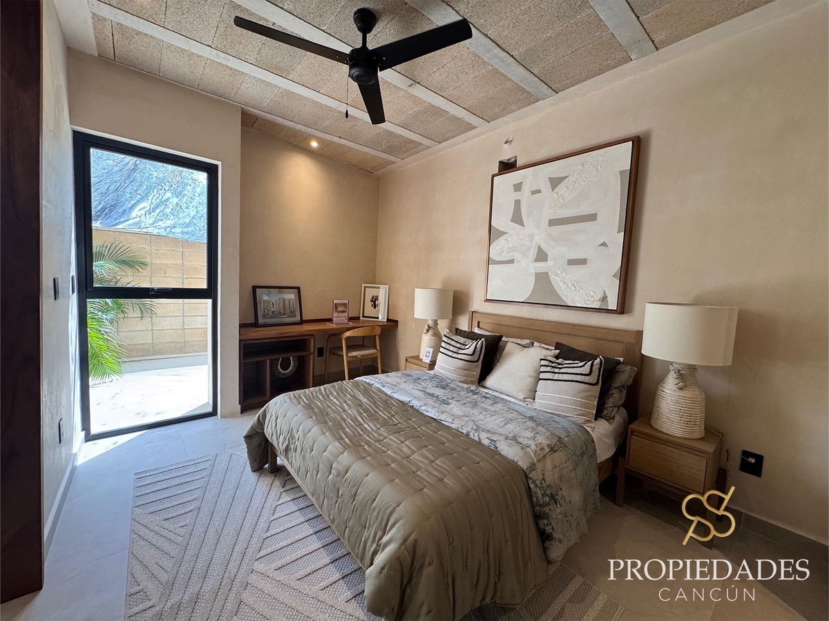 Modelos de 1 y 2 recámaras, con opciones de terraza o jardín, cocina integral, área de lavado y estacionamiento asignado.