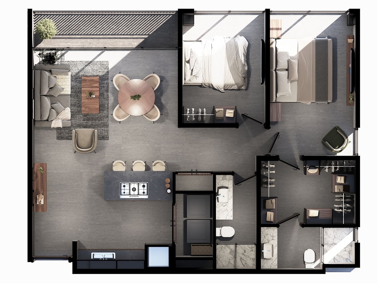 Este moderno desarrollo ofrece 26 departamentos distribuidos en 9 niveles, con superficies desde 39 m² hasta 131 m², ideales para quienes buscan un estilo de vida práctico y sofisticado en una de las zonas más exclusivas de Guadalajara.