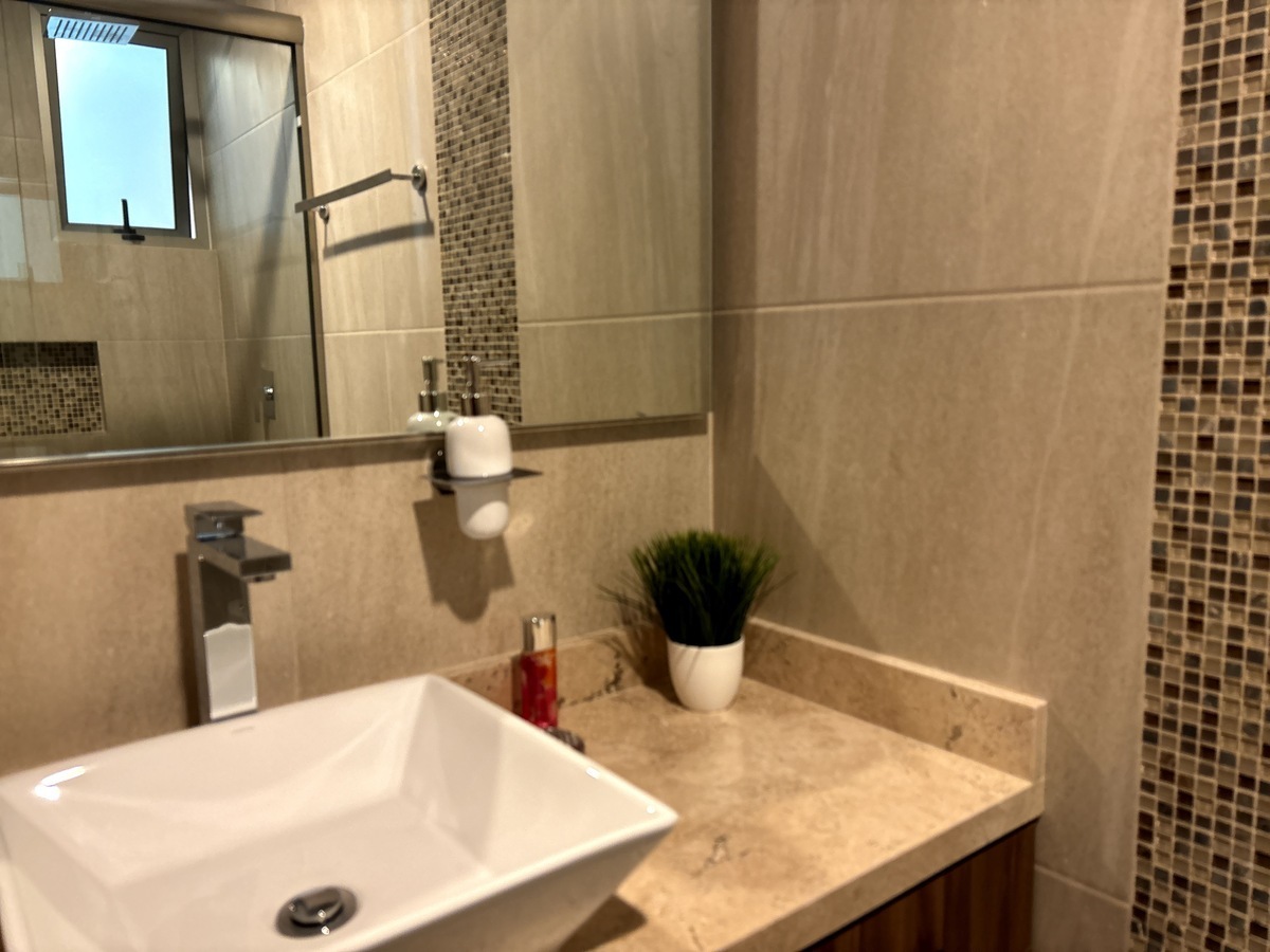El departamento tendrá un baño adicional completo que dará servicio a dos de las recámaras y a todos los demás espacios complementarios del departamento.