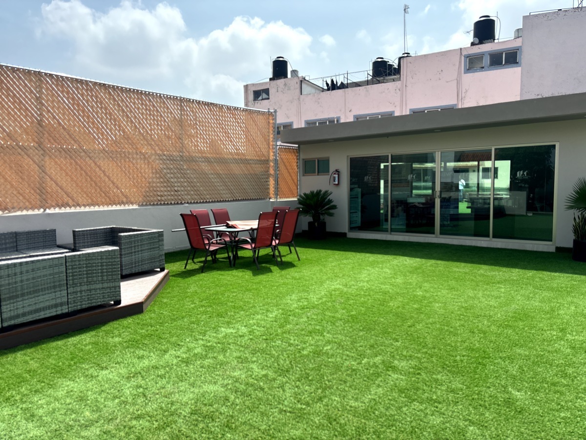 Los departamentos tendrán una sala con acceso a un balcón que lo delimitará un cancel corredizo, un comedor amplio para ocho personas, cocina equipada con BARRA DESAYUNADOR para cuatro personas, un cuarto de lavado protegido con persiana “louver” de acero para mantener iluminado y ventilado el espacio.