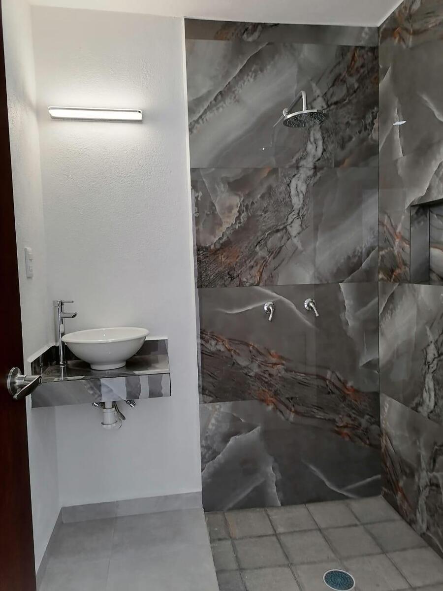 Recámara principal con baño completo y espacio de vestidor