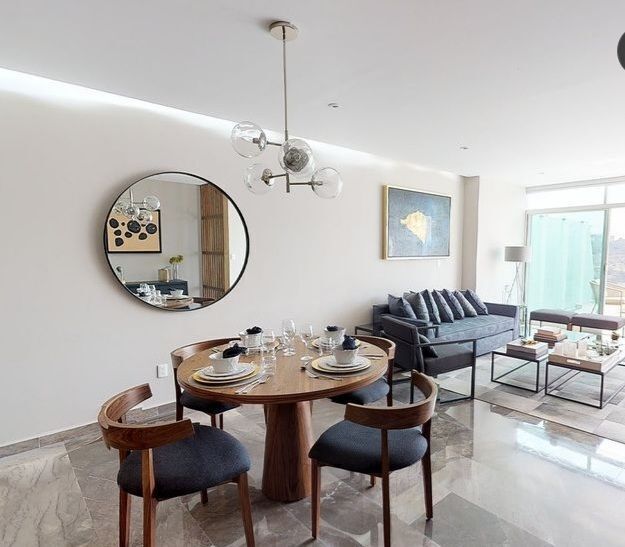 En Torre Residencial con elevador, lobby triple altura con recepcionista, salón de usos múltiples, cafetería, bar, sala de proyecciones, gimnasio 300 m2 totalmente equipado, vapor, alberca semi-olímpica, cancha de padel, juegos infantiles, extensas áreas verdes, Pet garden Fire pit, caseta de vigilancia. Departamento con acabados de lujo.