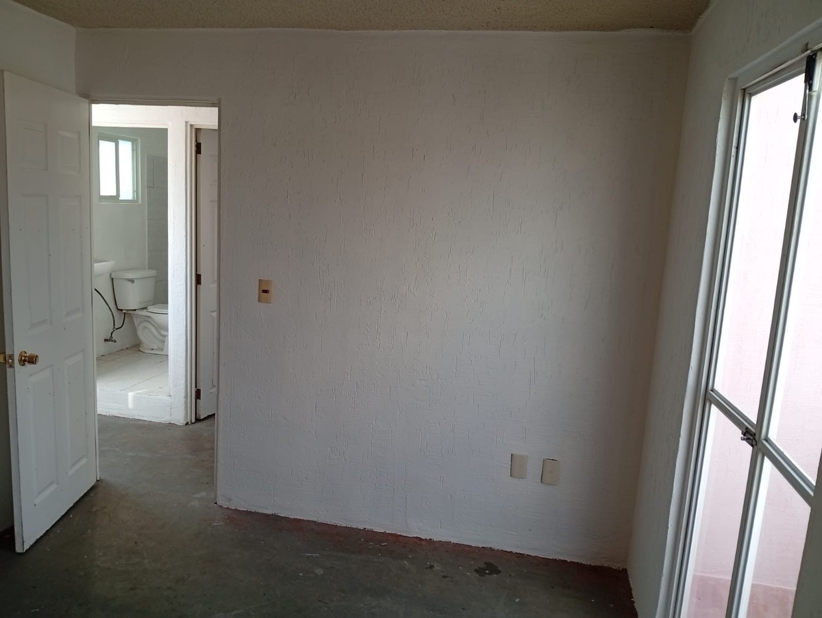 Dos recamas, espacio de sala y comedor, espacio para cocina, patio de servicio, baño completo.