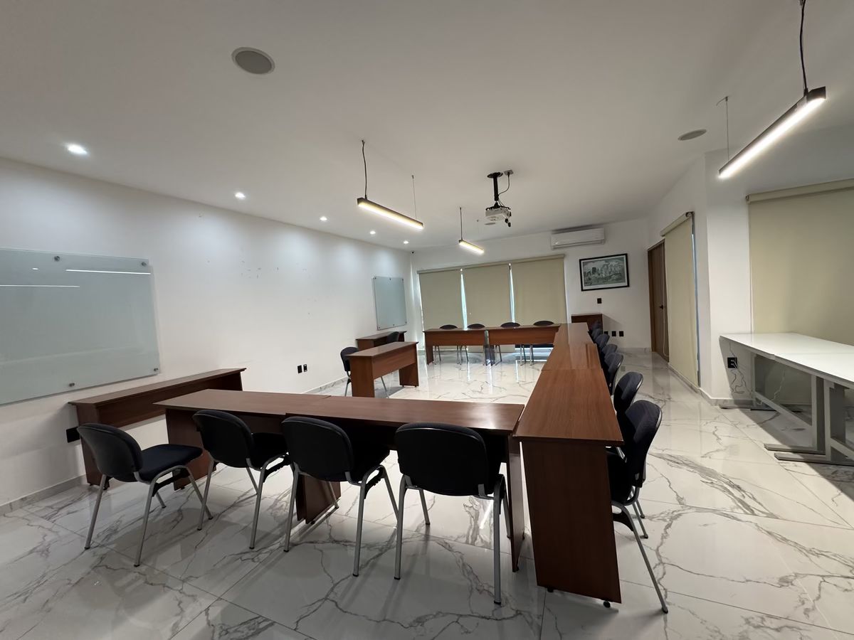 Piso 2 – Sala de juntas pequeña, Área general de esparcimiento con cocineta para coffe break, Área de capacitación para 30 personas aproximado, Espacio de bodega, Área de lavado, 1 baño completo, ½ baño.