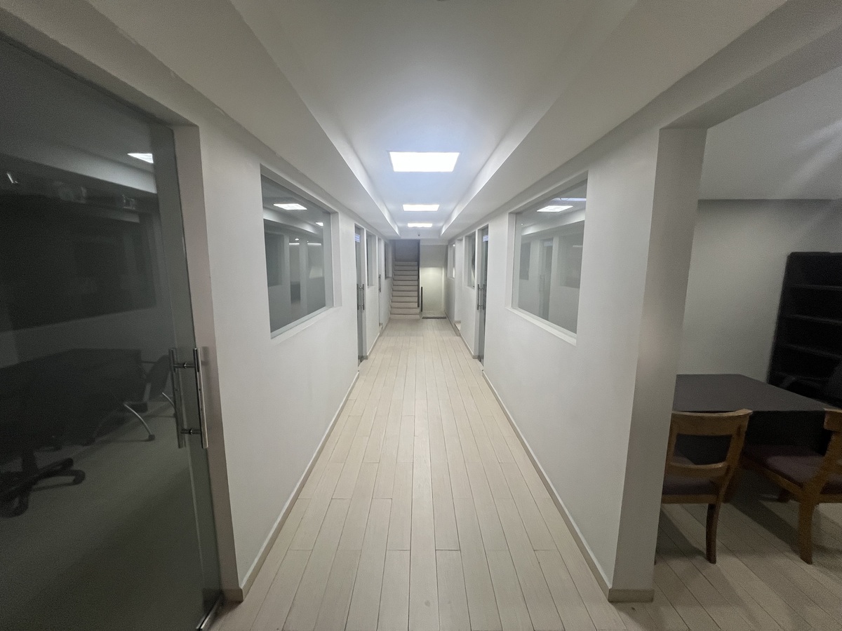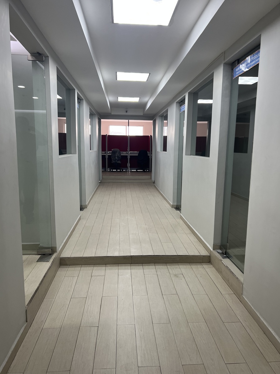 En primer planta tiene el Lobby con una Sala de Juntas y 4 oficinas independientes de 3x3m2 y 5x3m2 ; y un baño común que da servicio a esa planta.