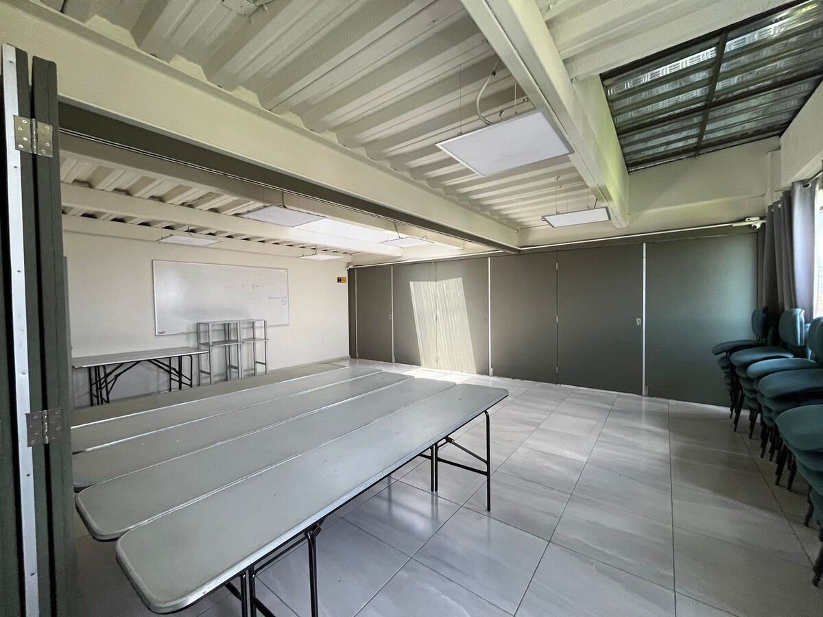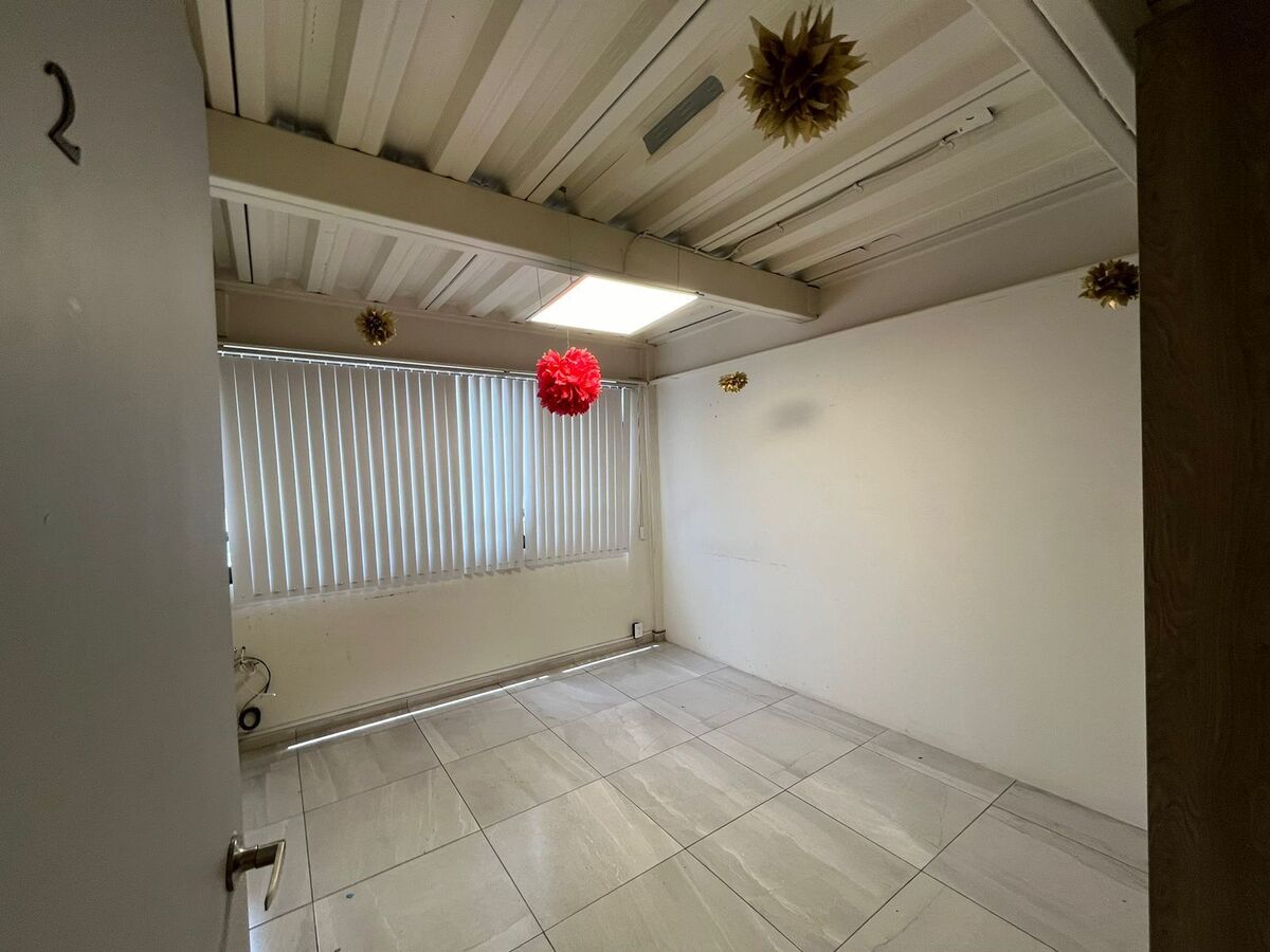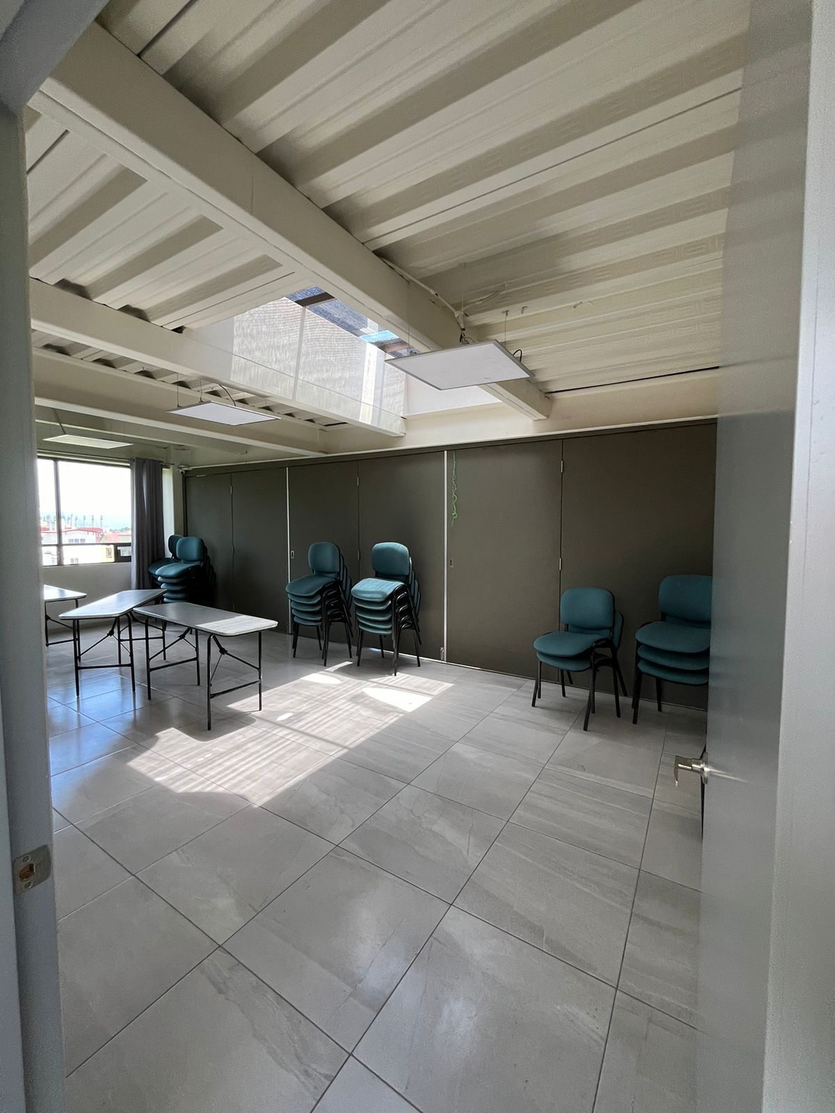 First floor 8 cubicles and/or classrooms, separate bathrooms for men and women.