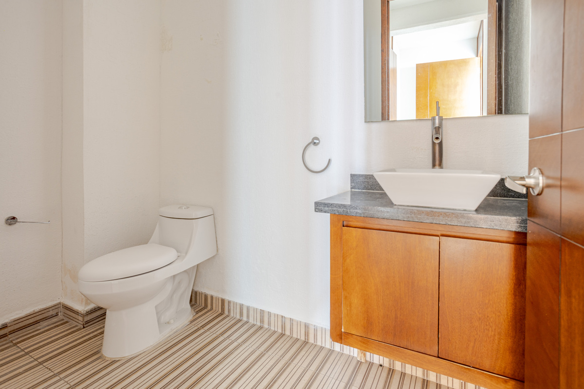 Nivel 3, área semitechada con baño y barra, todo con piso de cerámica, para poder hacer eventos al aire libre y núcleo de escaleras.