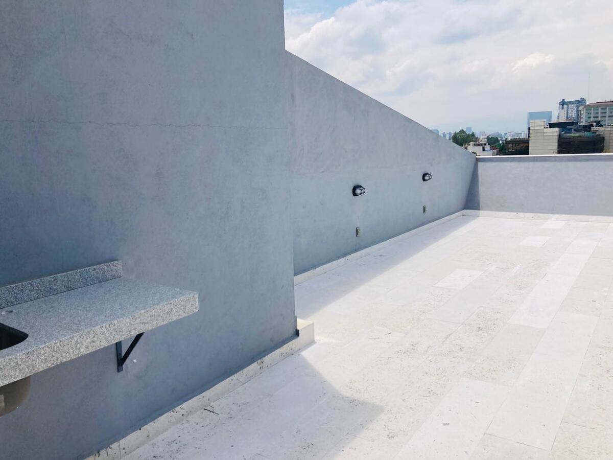 Departamento Nuevo con Roof Garden privado, ubicado al sur de la Ciudad de México, dentro de la alcaldía Benito Juárez, avenidas principales y parques cercanos, con 62.46 m² habitables, esta propiedad destaca por su diseño arquitectónico contemporáneo, funcionalidad y excelente distribución: cuenta con sala-comedor, cocina abierta totalmente equipada, 2 recámaras, 2 baños completos y un medio baño, cuarto de lavado y bodega, un balcón de 5.9 m2 lo que hace que el departamento tenga una extraordinaria luz natural, un lugar de estacionamiento.