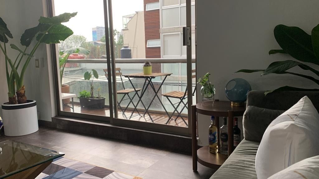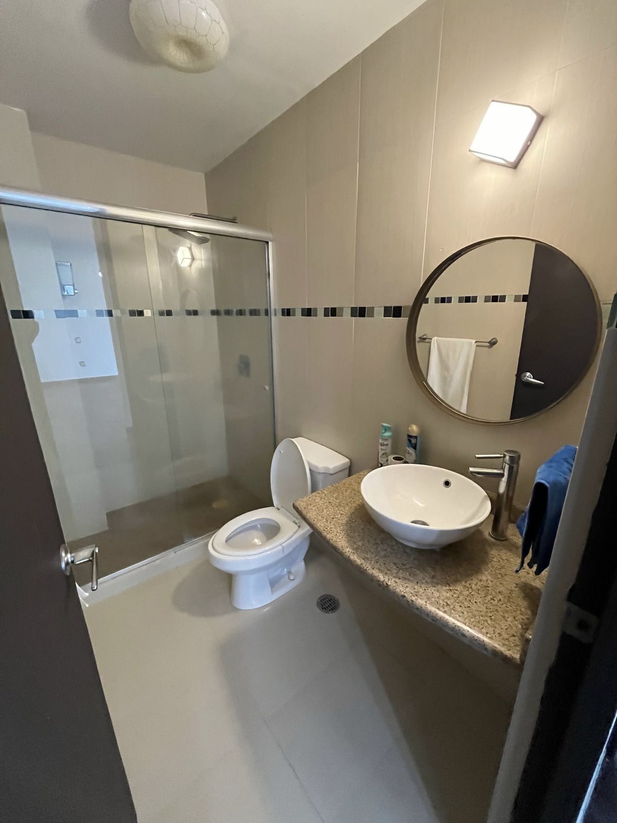 The apartment located on the second level of this 9-year-old apartment tower with an excellent location within one of the most central areas of the city, features: open kitchen, laundry room, living-dining room, spacious balcony, master and secondary bedroom each with its closet, a full bathroom, electric curtains, and a fixed parking space.