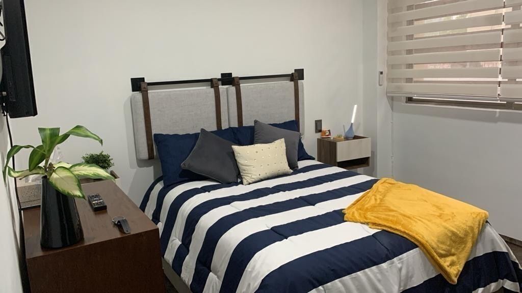 El departamento ubicado en el segundo nivel de esta torre de departamentos de 9 años de antigüedad con una excelente ubicación dentro de una de las zonas más céntricas de la ciudad, cuenta con: cocina abierta, cuarto de lavado, sala comedor, amplio balcón, habitación principal y secundaria cada una con su closet, un baño completo, cortinas eléctricas y un lugar de estacionamiento fijo.