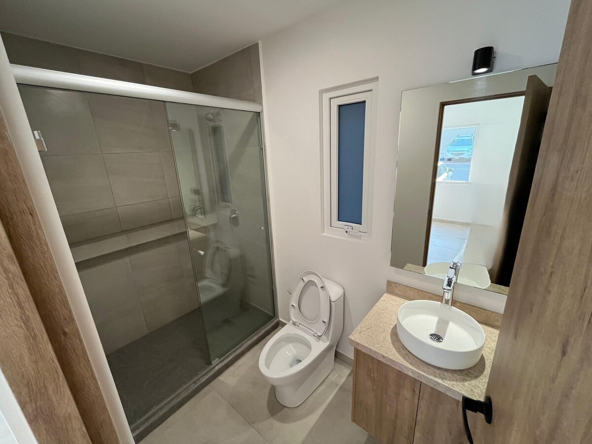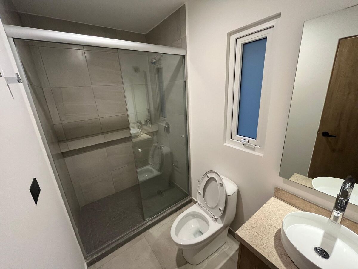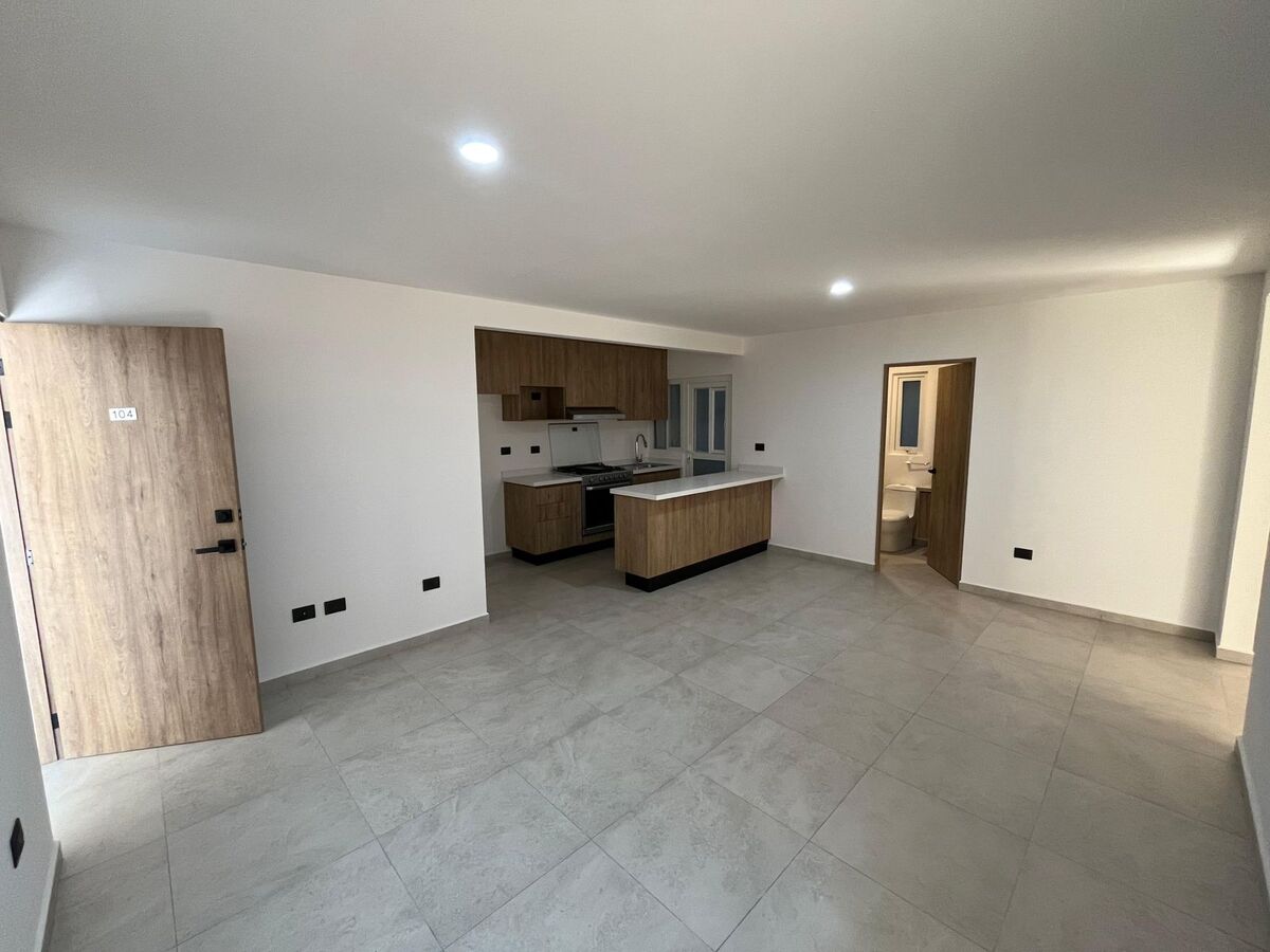 Los departamentos cuentan con 2 recámaras con clóset cerrado, 2 baños completos con cancel, vanity y espejo, sala, comedor, cocina integral con estufa, horno, campaña y barra desayunadora, área de lavado, calentador de paso, iluminación inteligente, un lugar de estacionamiento.