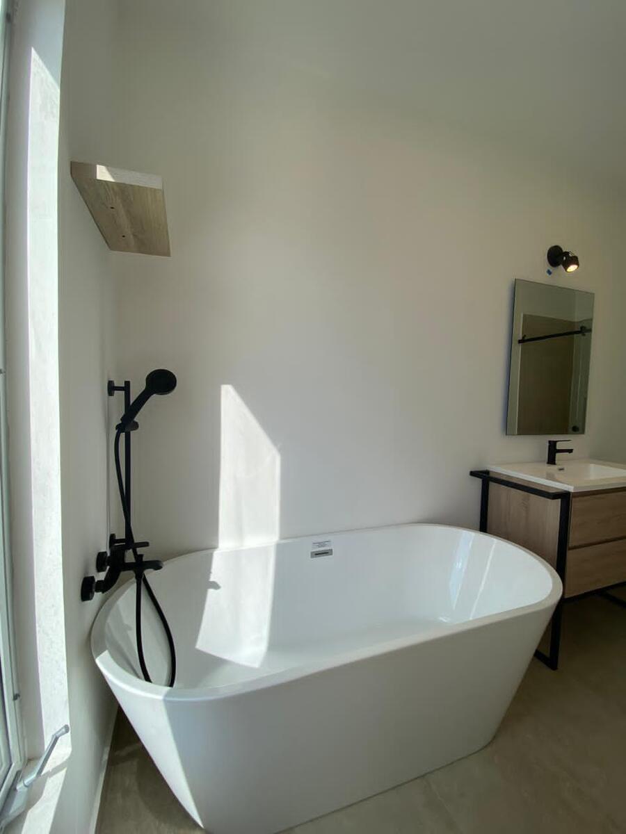 -Recámara secundaria con tina y cancel de vidrio templado 🛁
