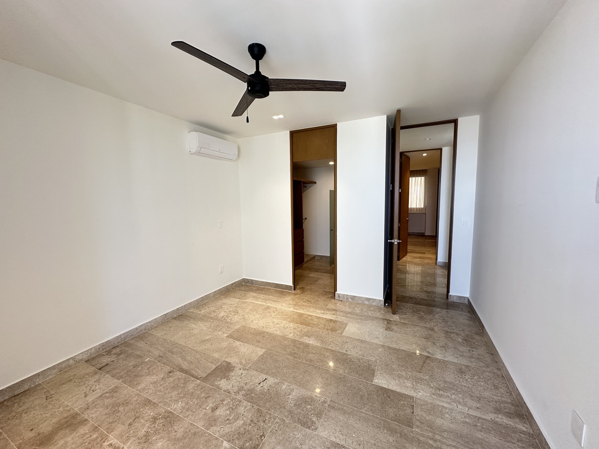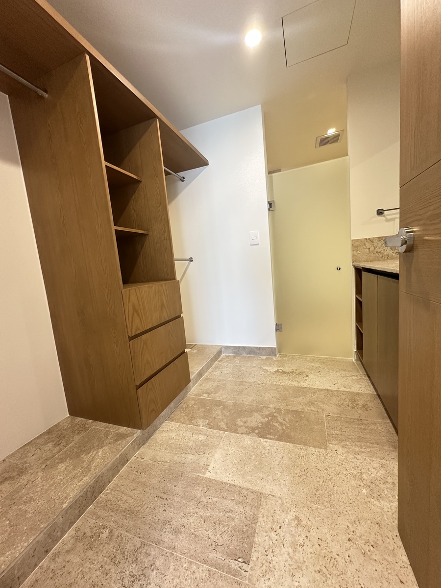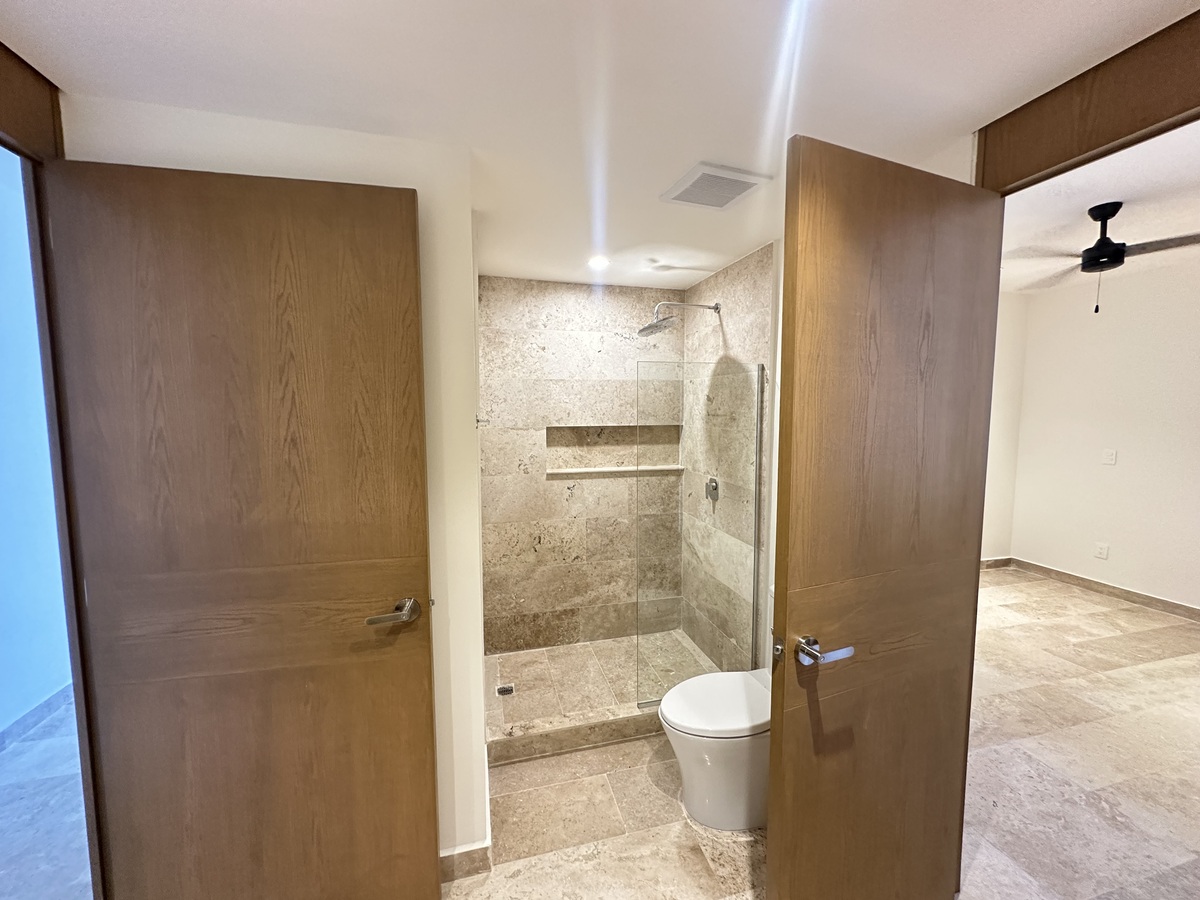 Recámara principal con clóset vestidor y baño completo con doble lavabo