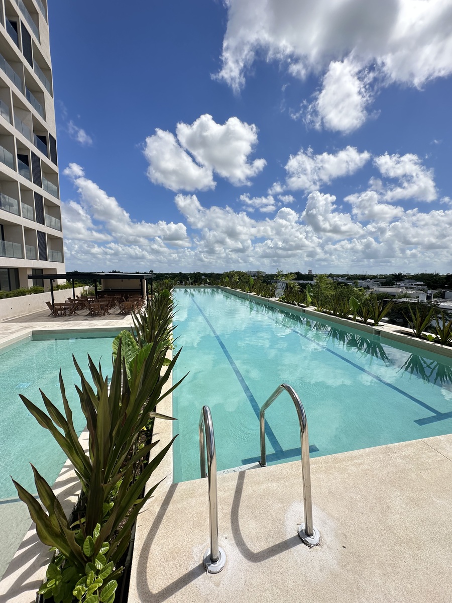 Ubicado en Santa Gertrúdis Copó, con más de 25 amenidades; entre ellos gimnasio, alberca, carril de nado y salón de usos múltiples.