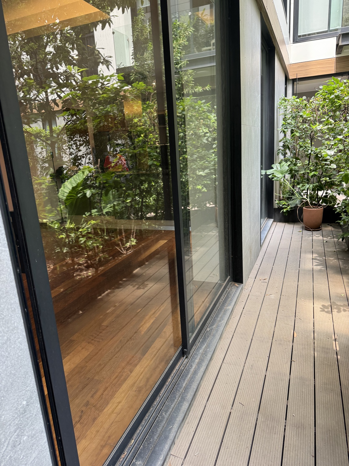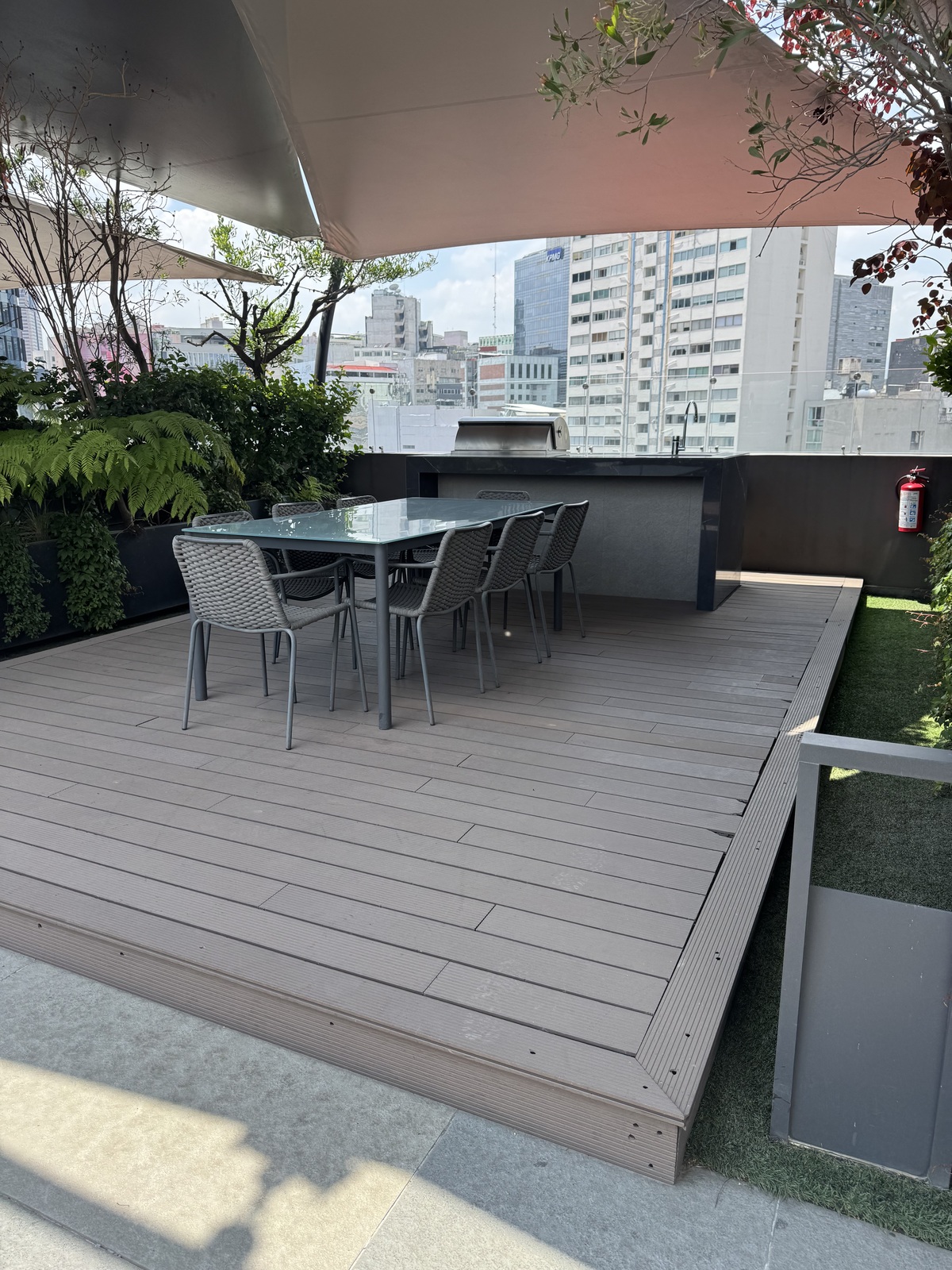 EXCELENTE DEPTO, PISOS DE MADERA EN EXCELENTES CONDICIONES, 3 RECAMARAS CON BAÑO COMPLETO CADA UNA Y LA PRINCIPAL CON VESTIDOR, LAS OTRAS DOS CON CLOSETS, Y CADA UNA TIENE UNA TERRAZA. AL SER PLANTA BAJA CUENTA CON UNA TERRAZA CON TARJA Y AZADOR, TAMBIEN TIENE UN ESPACIO PARA SALA DE TV. Y EL COMEDOR CUENTA CON SALIDA A UNA TERRAZA TAMBIEN.