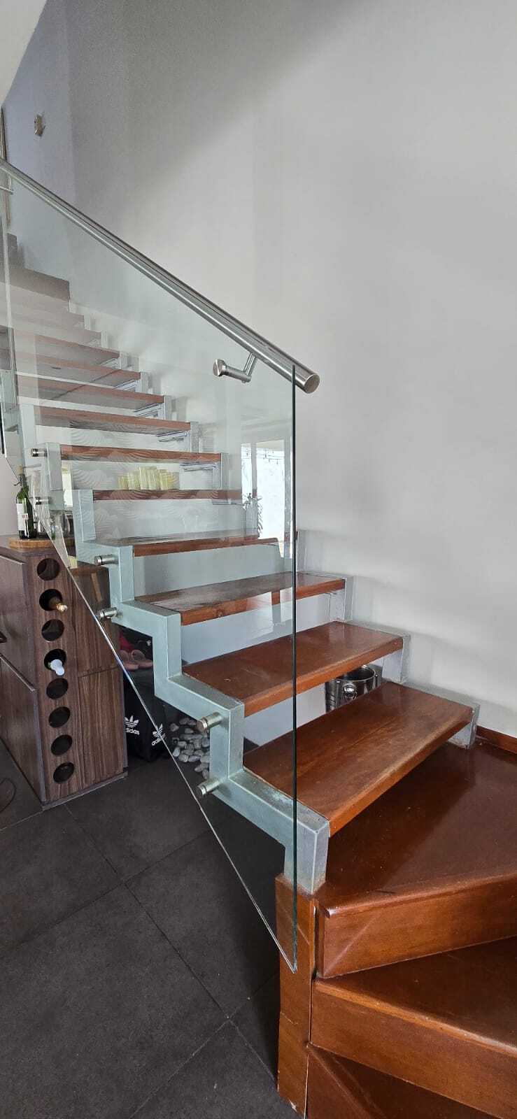 🔸Escaleras de madera (roble), con acero inoxidable y cristal Templado