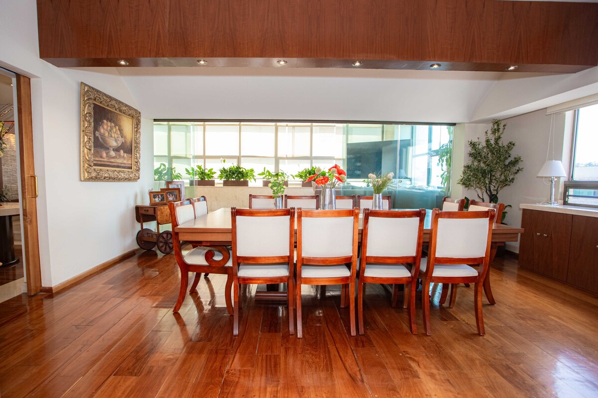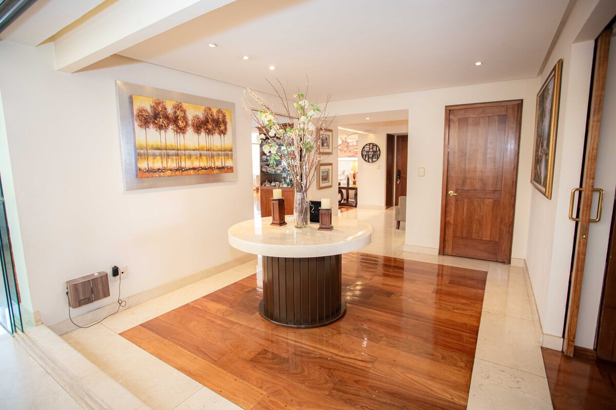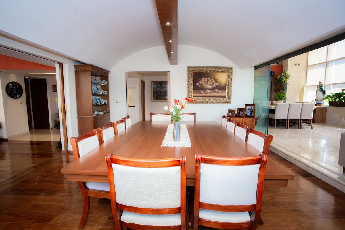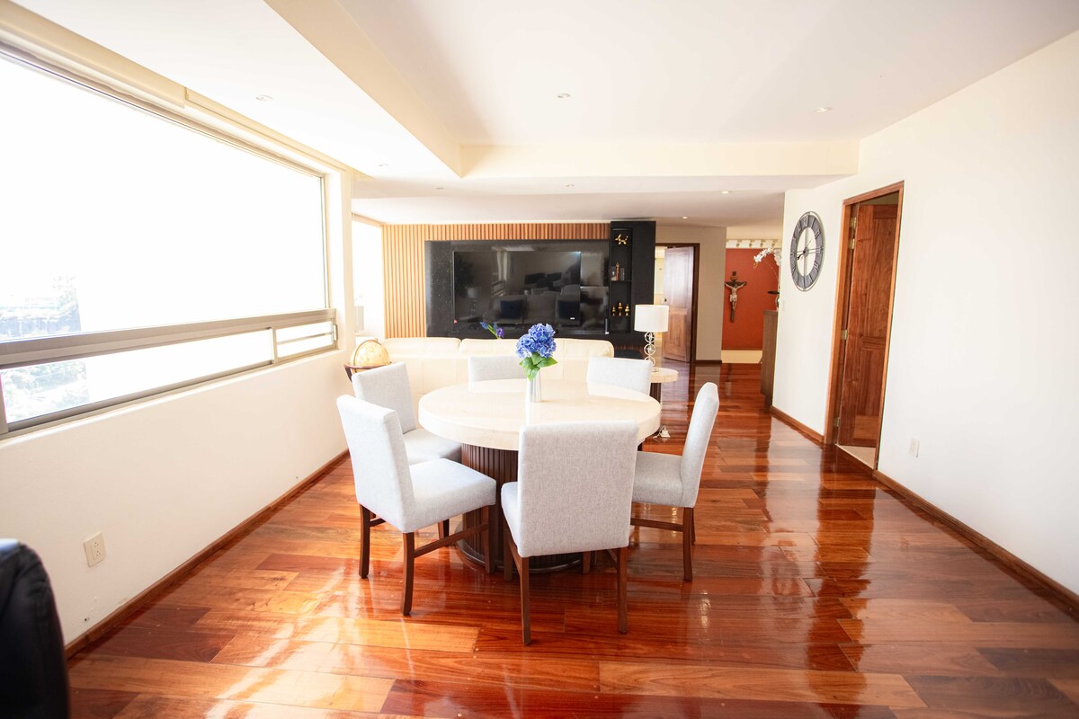 For privacy notice, complaints, and suggestions, please visit our website.Departamento con vistas espectaculares , muy iluminado y temperatura agradable. Cuenta con Mármol y madera en pisos, En la primer planta encontramos un lobby muy bonito, una sala y una gran terraza, ambos a doble altura y comedor para 14-16 personas todo con vistas impresionantes. Ademas cuenta con Cocina equipada con cubiertas de granito, un Family bastante grande, lavandera y cuarto de servicio, bodegas. En la segunda planta cuenta con área de closet de blancos, recibidor, un amplio Family con área de computadoras/ espacio para Home office y baño completo. Así como 2 muy grandes recamaras (suite) con vestidor y baño y una tercer recamara amplia, con vestidor y baño.