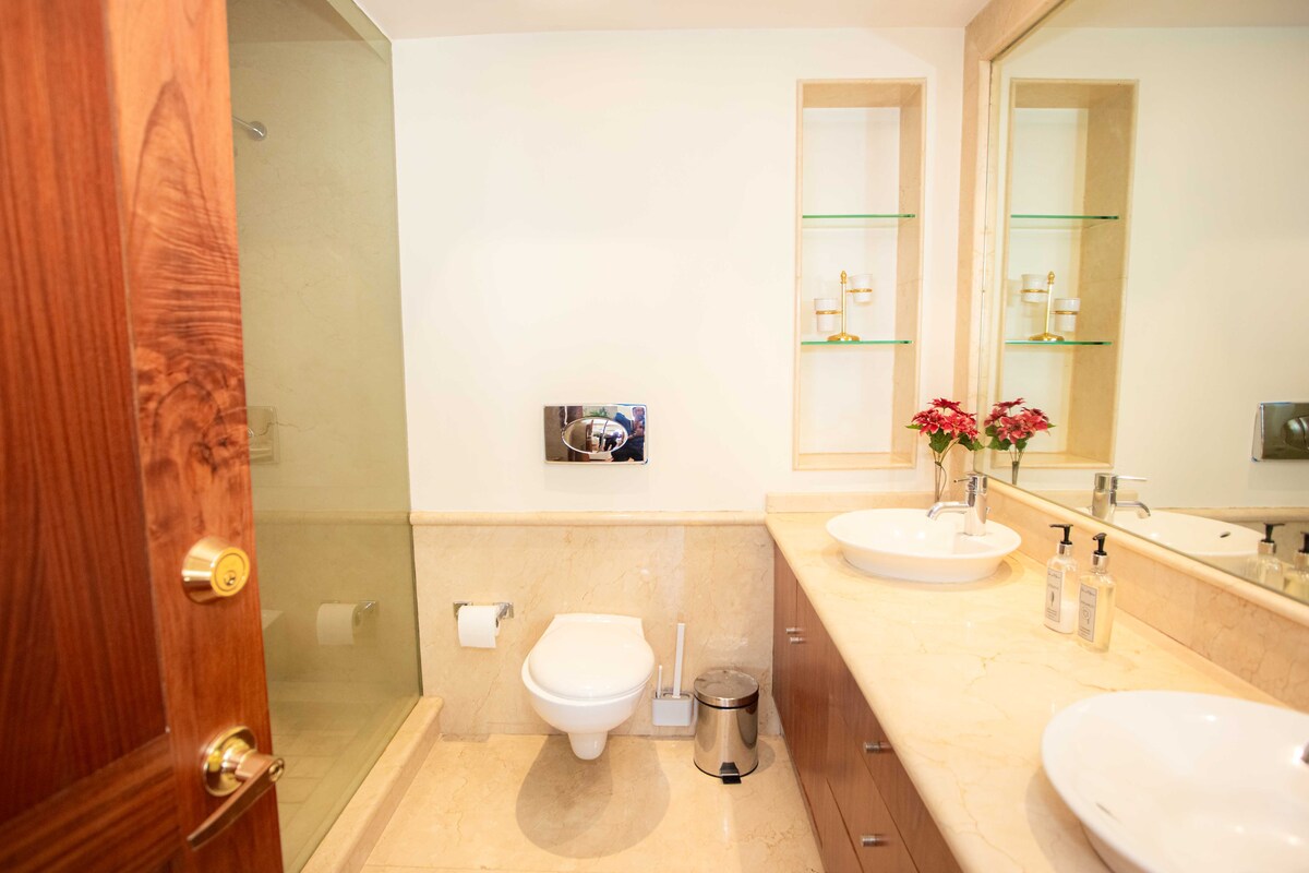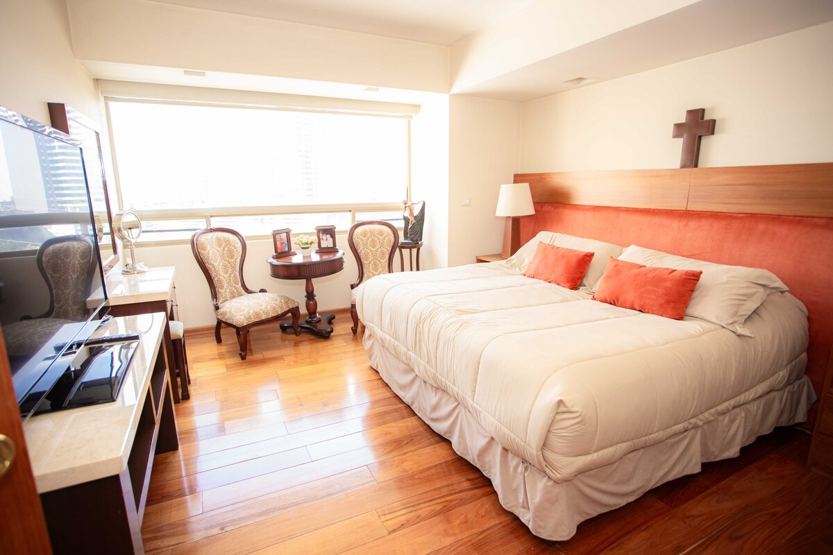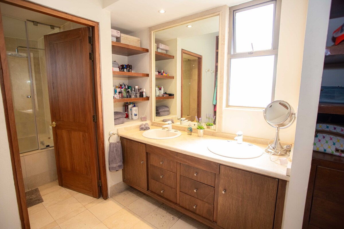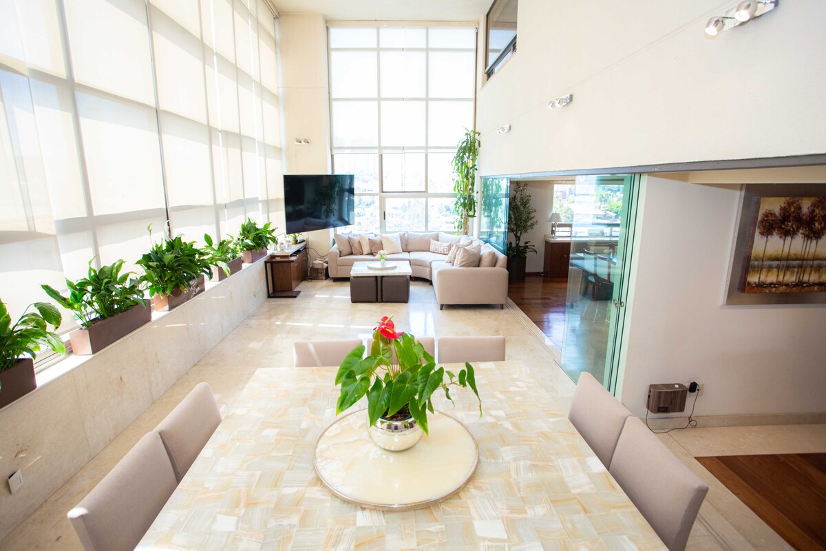 Apartment with spectacular views, very bright and pleasant temperature. It has marble and wood floors. On the first floor, we find a very nice lobby, a living room, and a large terrace, both with double height, and a dining room for 14-16 people, all with stunning views. It also has a kitchen equipped with granite countertops, a quite large family room, a laundry room, and a service room, storage rooms. On the second floor, there is a linen closet area, a reception area, a spacious family room with a computer area/home office space, and a full bathroom. There are also 2 very large bedrooms (suite) with a dressing room and bathroom, and a third spacious bedroom with a dressing room and bathroom.