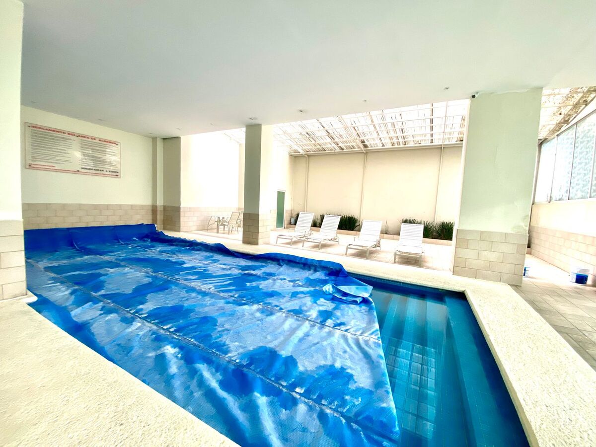 Areas comunes : alberca techada con baños y sauna, gym, salón de fiestas, jardín con juegos infantiles