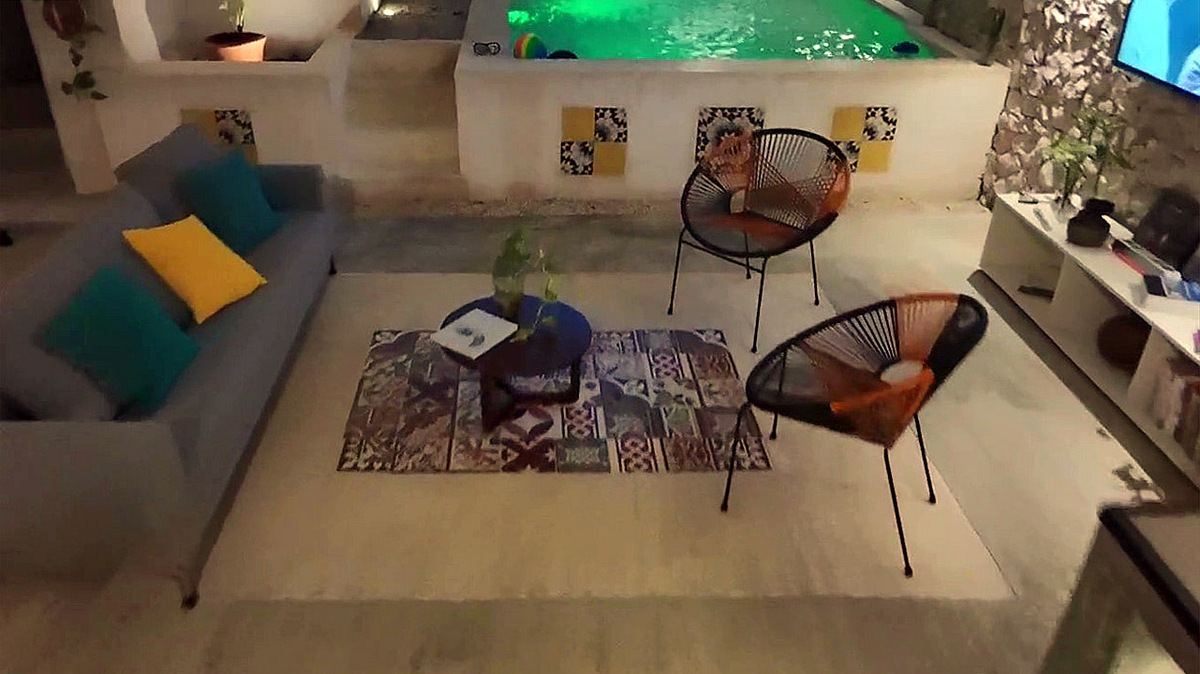 Finishes in chukum, pasta tiles, and kimikolor stucco.