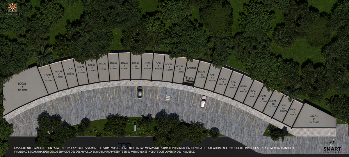 El proyecto se encuentra conformado por un nivel de locales comerciales a doble altura, contempla espacios con superficies promedio de 41.00m2 y una altura interior de 5.50m.