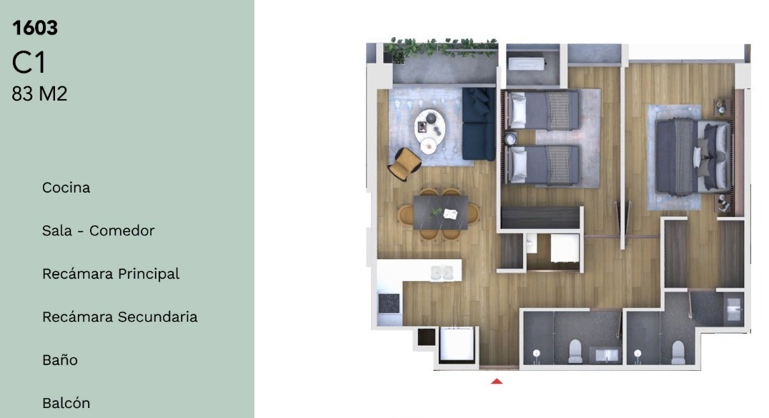 Cuenta con 18 niveles de área residencial con múltiples opciones de departamentos, incluyendo modelos estudio y espacios flex, en un entorno cuidadosamente planeado para brindar seguridad y tranquilidad.