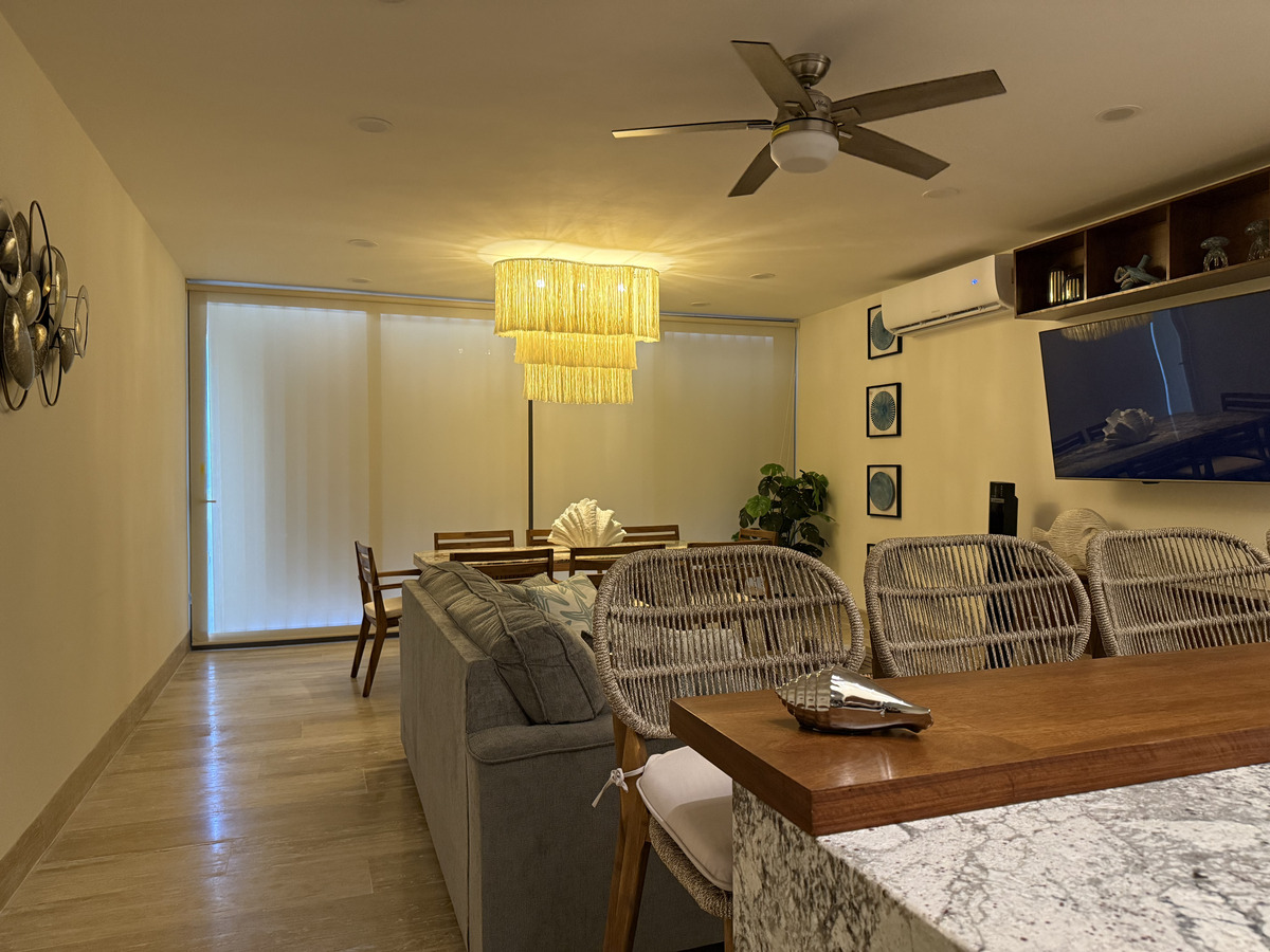 - Sala–comedor con vista al mar.