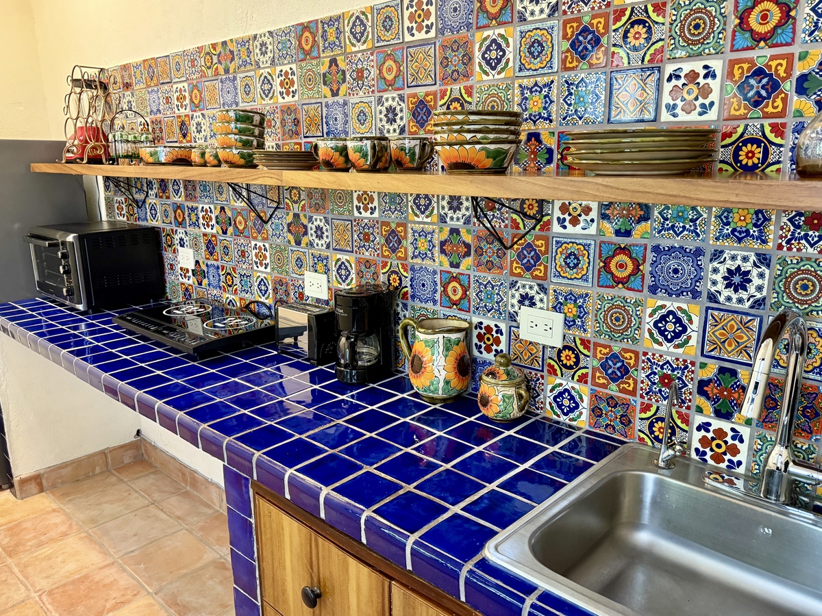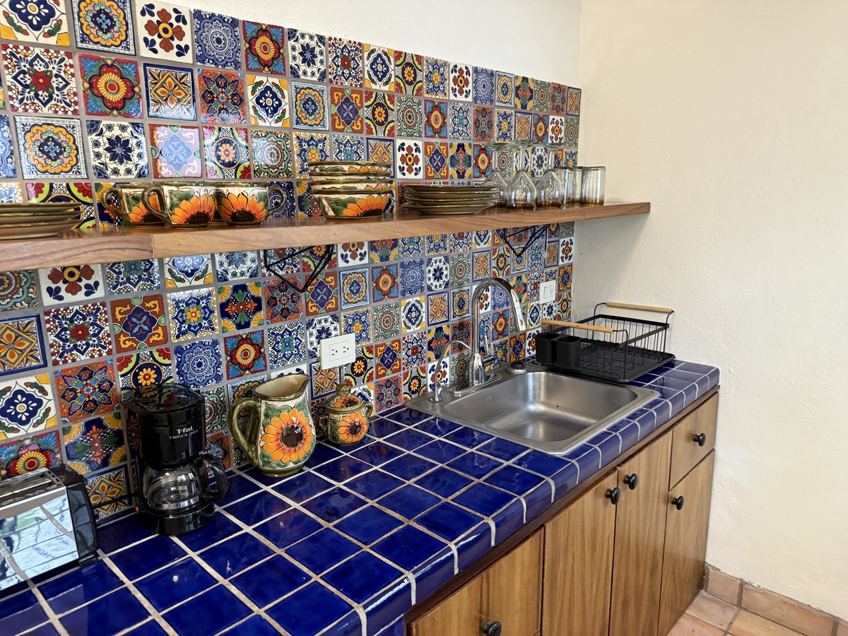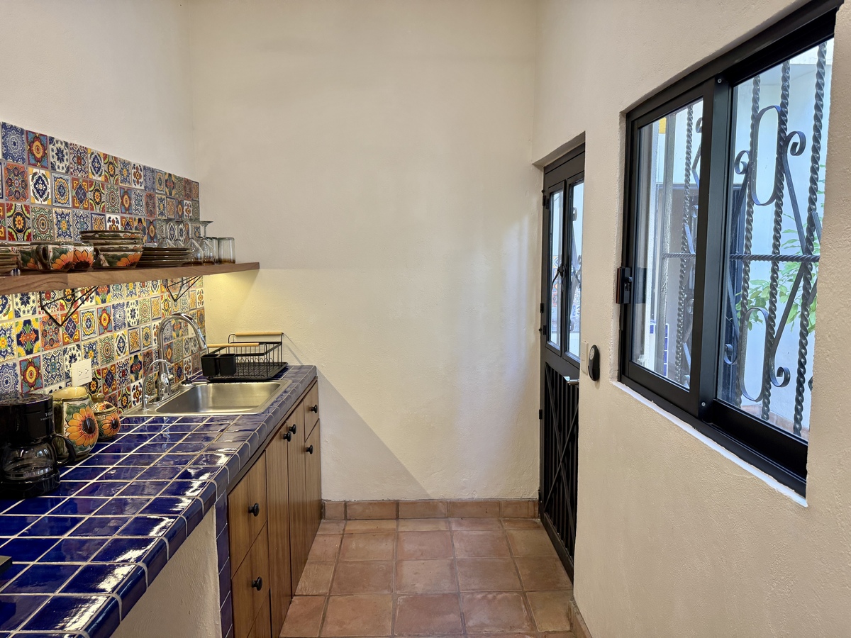 Totalmente renovada, esta casa destaca por su auténtica artesanía mexicana con azulejos de Talavera hechos a mano y pisos de Saltillo en todo el interior.