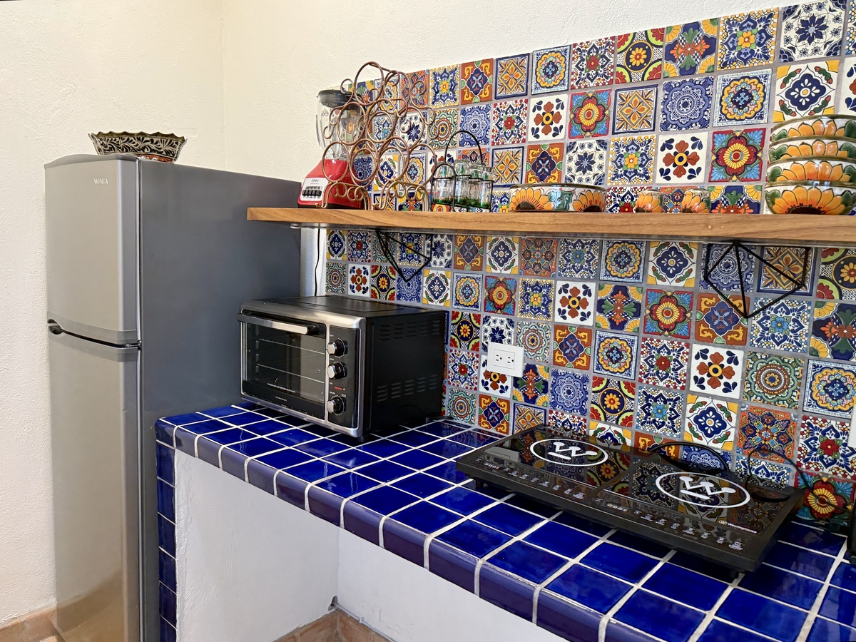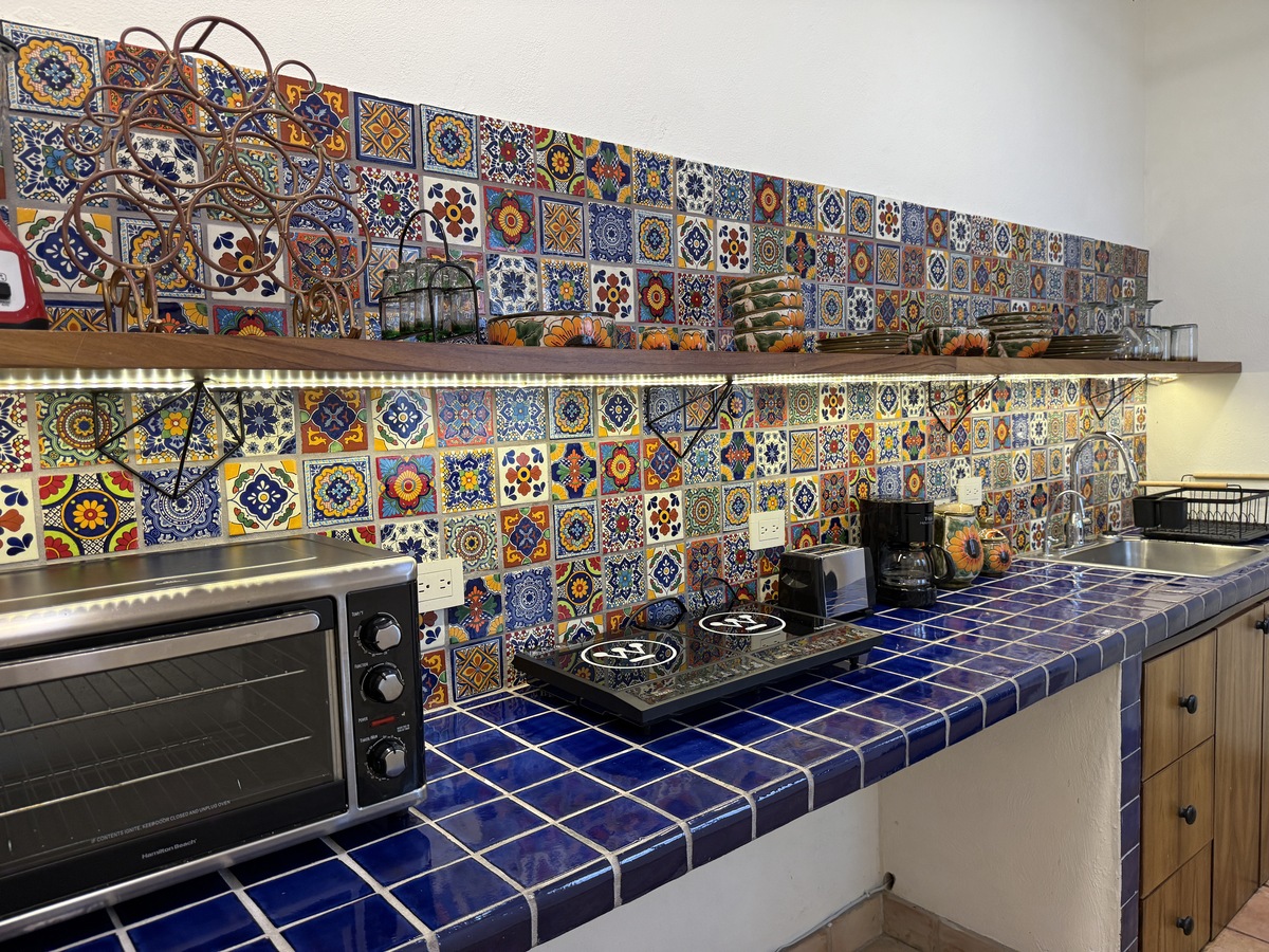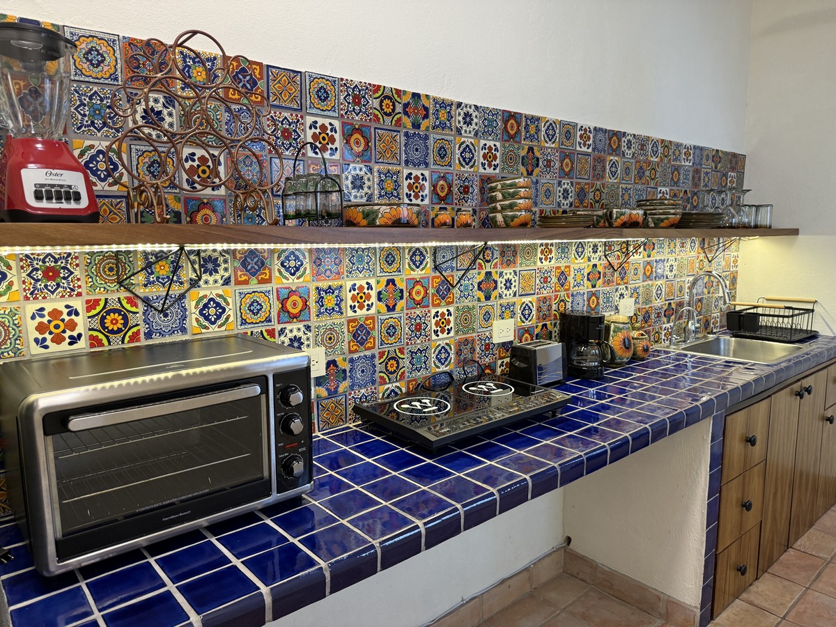 Totalmente renovada, esta casa destaca por su auténtica artesanía mexicana con azulejos de Talavera hechos a mano y pisos de Saltillo en todo el interior.