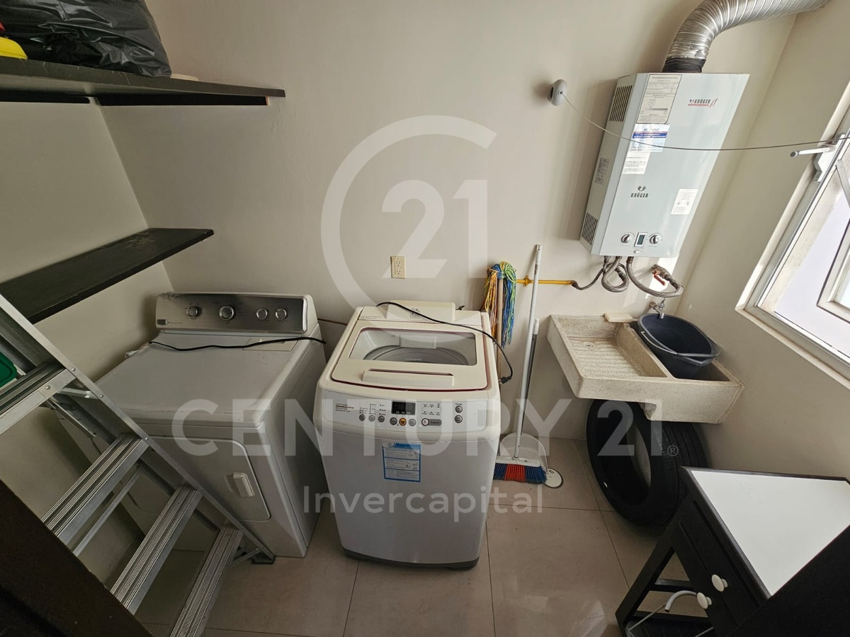 🔸 Área de servicio con lavadora, secadora, calentador y lavadero