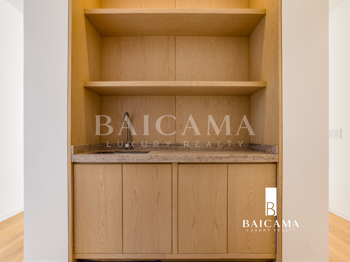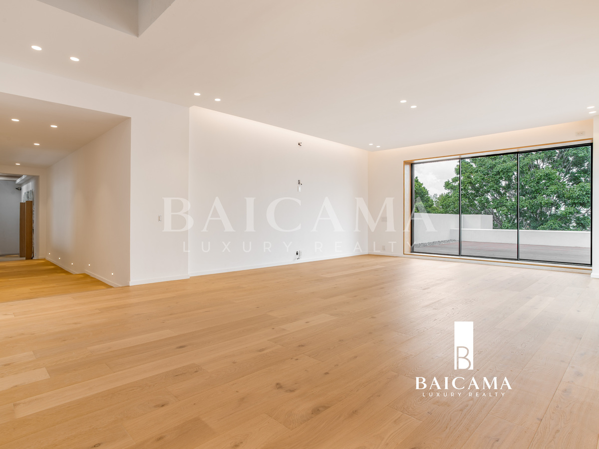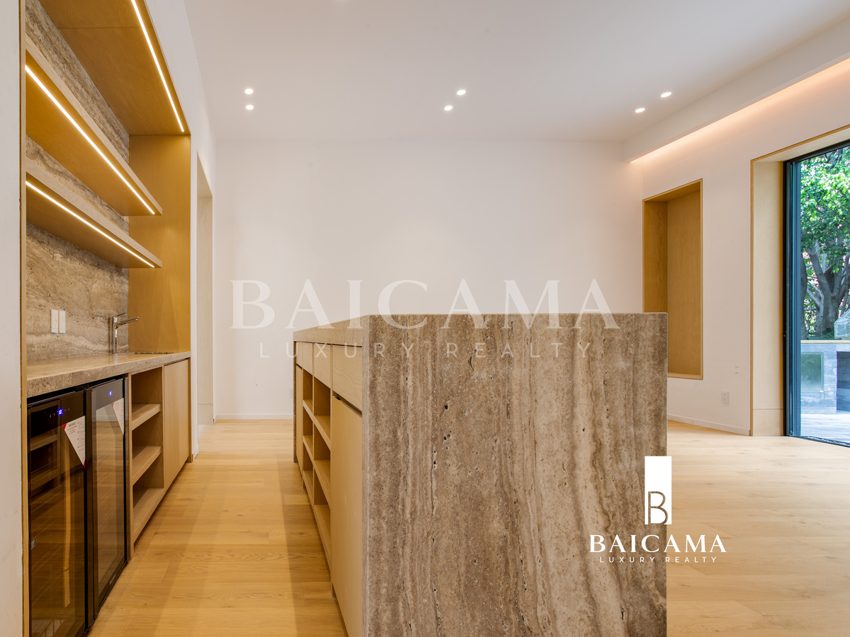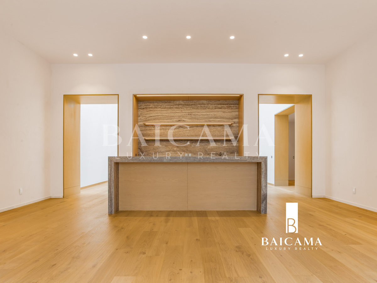 Upon entering, a bright foyer leads to spacious social areas with views of the garden and extraordinary landscaping. The kitchen is equipped with high-end appliances and premium finishes, designed for culinary enthusiasts.