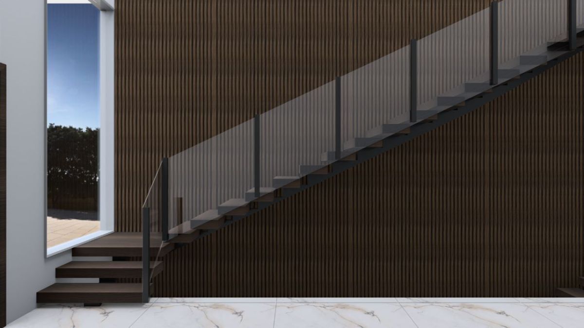 Eléctrico, escalera parota, Acero al carbón con madera de parota