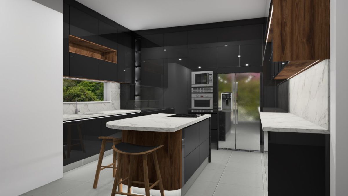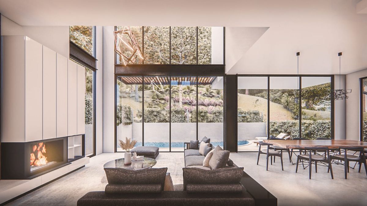 Planta Baja: Recibidor, 1 Recamara con baño completo o estudio, Cocina equipada de granito y torre de calientes, Sala, Comedor, Terraza Techada, Jardín con Asador, Alberca de 3 x 6.50 Climatizada, Escalera de Acero al carbón con