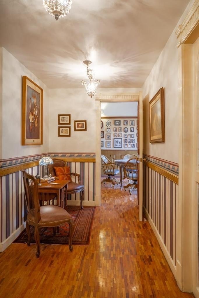 * Dining room with wooded view.