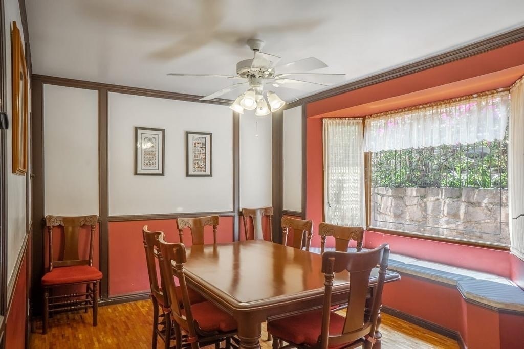 * Espacio para comedor con vista arbolada.