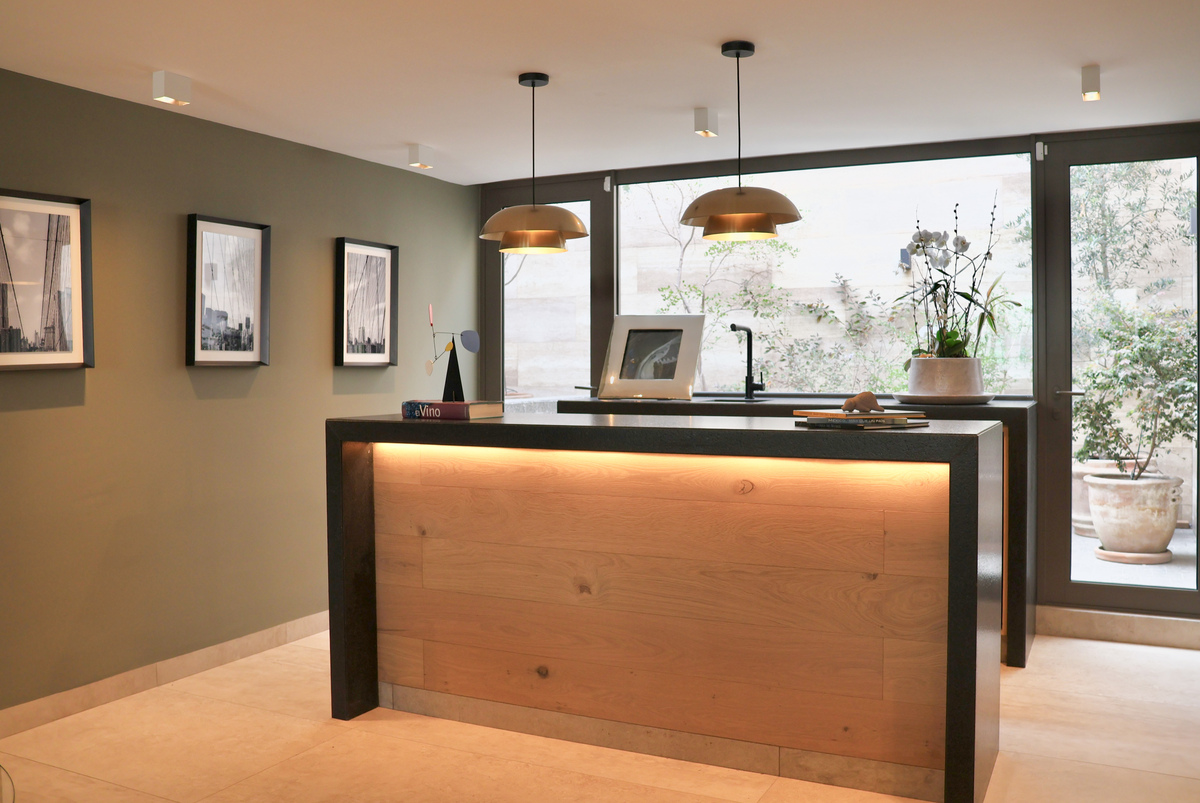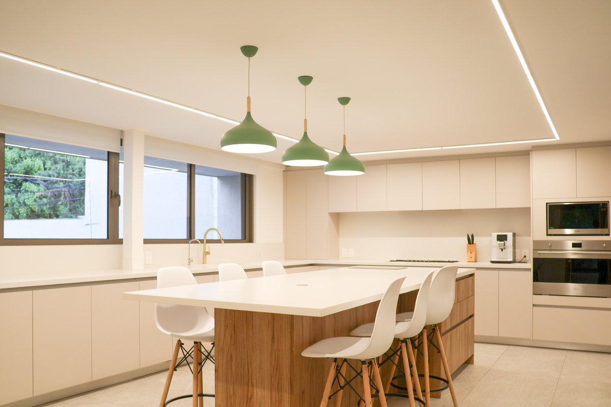 • Cocina de diseño con cubiertas de cuarzo y electrodomésticos