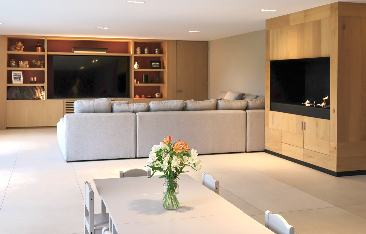 • Sala de TV y cuarto de usos múltiples con chimenea.