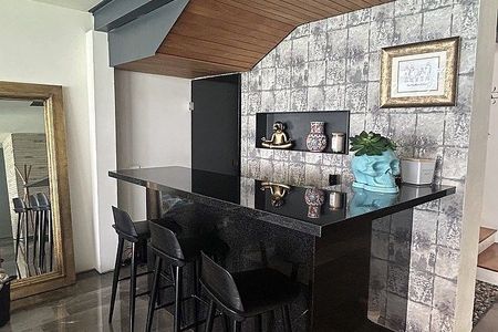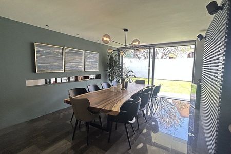 On another level leading to the basement, there is an entertainment and work area with spaces such as a multipurpose room, bar, wine cellar, large cinema room, library or office, a full bathroom, and several storage rooms. These spaces have direct access to the garden, which features a sunken terrace and barbecue area, integrating indoor and outdoor spaces with refined taste.