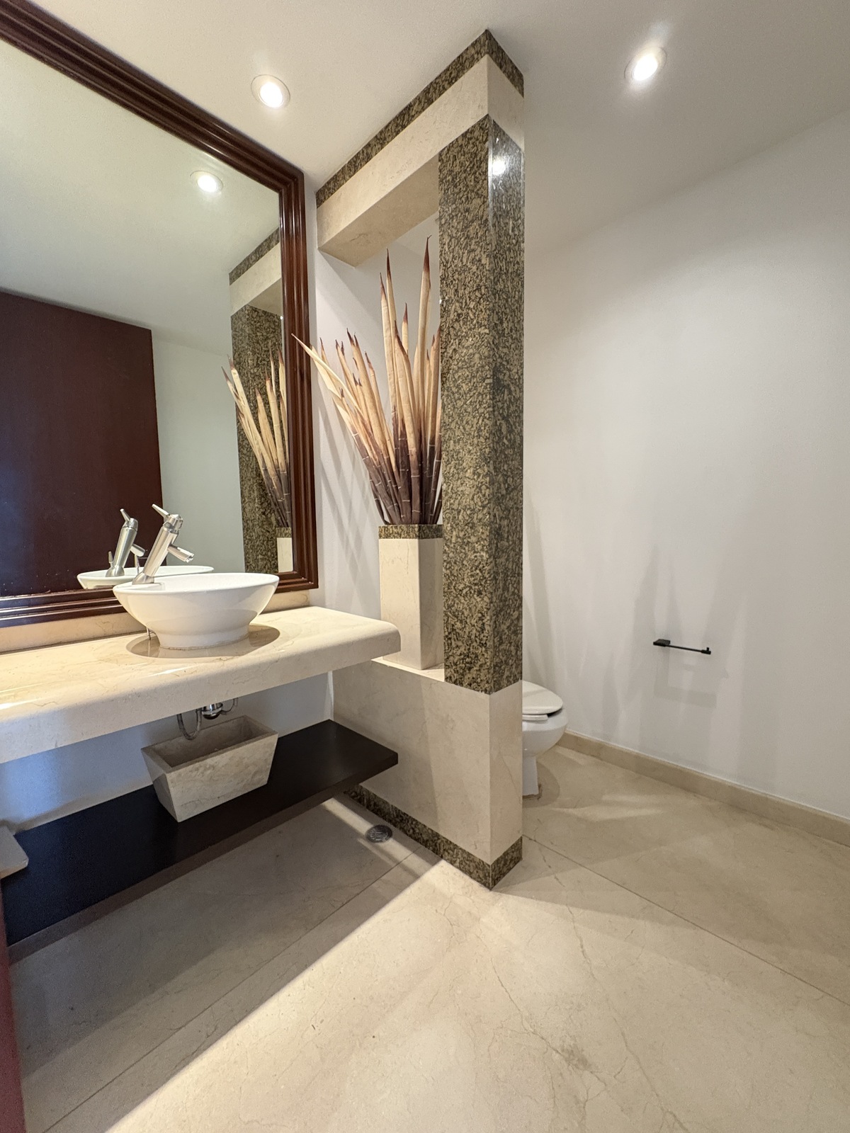 336m2 con amplia sala y comedor con balcón, medio baño de visitas, cocina integral con alacena.