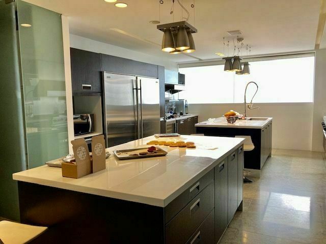 Tiene 660m de superficie, un gran recibidor, con elevadores al piso, una enorme estancia de sala y comedor con pisos de madera natural, cuarto de televisión, una espaciosa cocina con gran isla en el medio, gran despensa, muchos gabinetes para guardar.