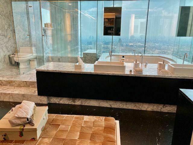 The very large master bedroom with an integrated living room, two large dressing rooms, bathroom with panoramic jacuzzi.