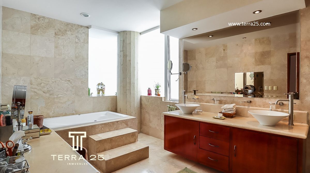 Con 3 recamaras con baño y vestidor cuenta con opción a una cuarta, elevador directo al departamento, oficina o despacho.