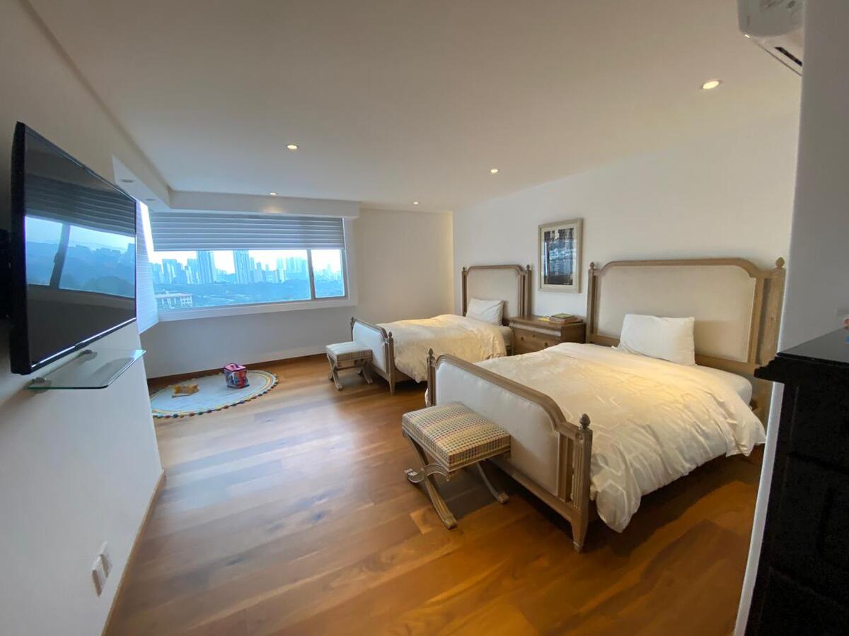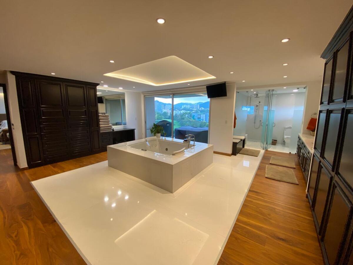 IN THE PRIVATE AREA, WE HAVE A LARGE FAMILY ROOM OR TV ROOM, CONNECTING US TO THE LARGE MASTER SUITE, FOR WHICH THE SPACES OF TWO BEDROOMS WERE COMBINED, ONCE AGAIN GENERATING THE SPLENDOR OF LUXURY AND COMFORT, BOTH IN THE BEDROOM AND WITH THE LARGE DRESSING ROOM, SURROUNDING AN EXQUISITE JACUZZI, FROM WHICH YOU CAN ENJOY THE SAME VIEW THROUGH THE WINDOW THAT CONNECTS TO THE DELICIOUS TERRACE.