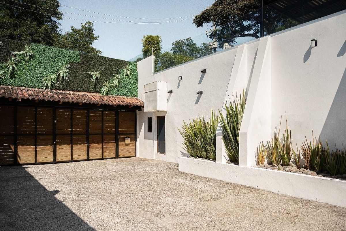 - La casa se distribuye en desniveles. A nivel de calle contamos con cochera para 6 autos y 2 cuartos de servicio con baño