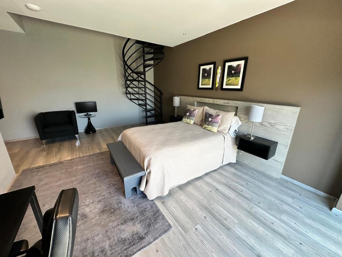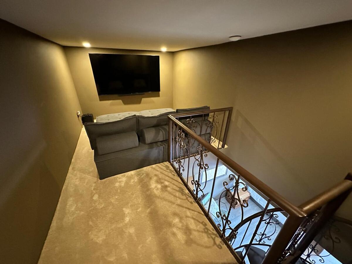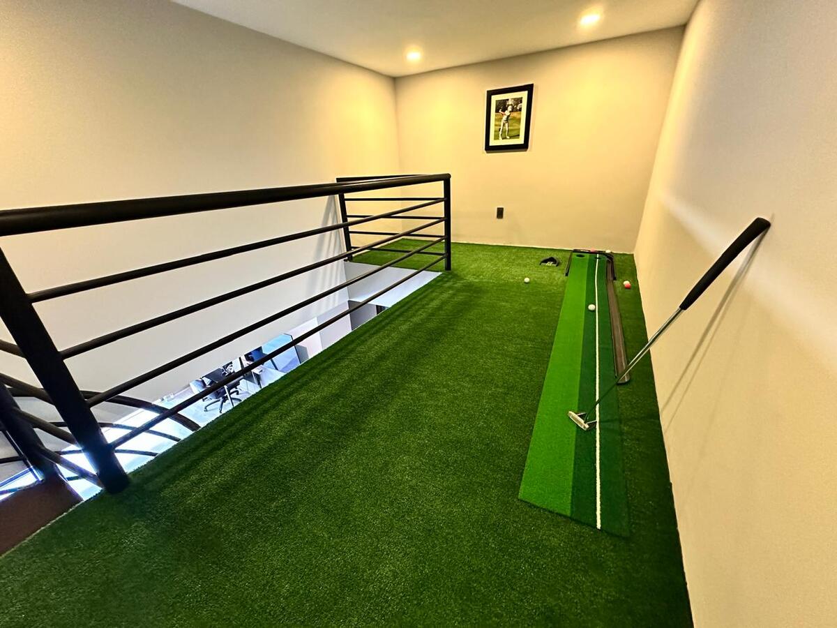 Una de las recámaras con hoyo de práctica de golf y otra con una sala de TV privada en un tapanco (ambas)
