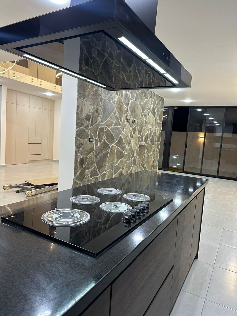 Medio baño en la parte de abajo. Cocina equipada con horno eléctrico, parrilla de gas, campana touch y fregadero de acero inoxidable (con accesorios). Y cuarto de servicio