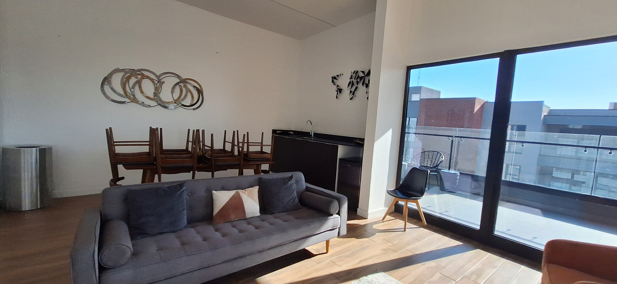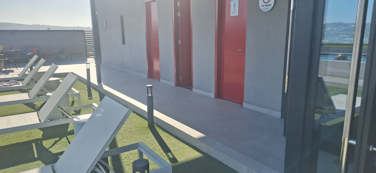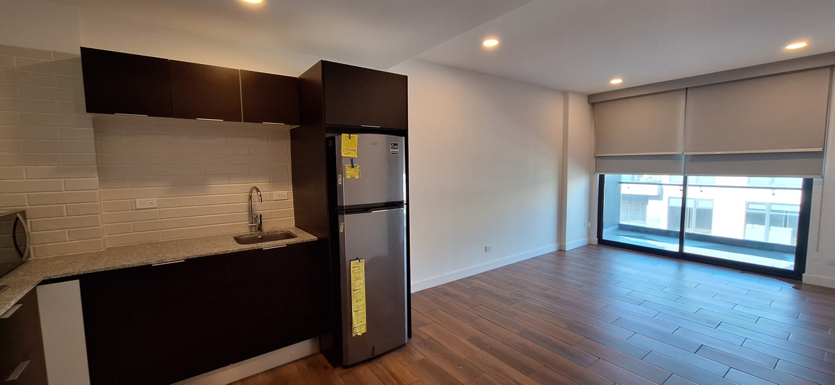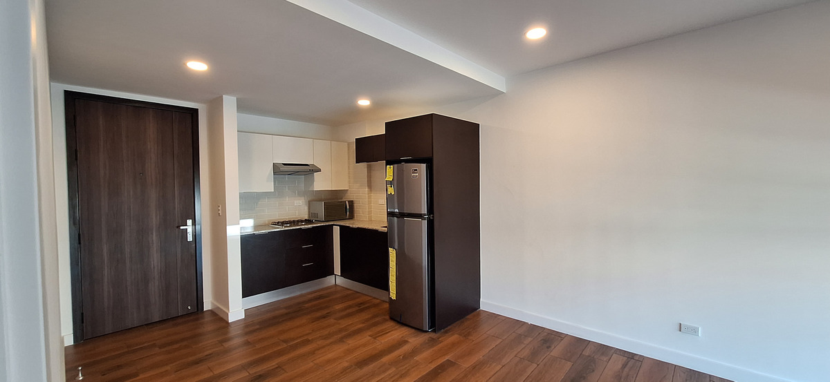 + Cocina equipada con parrilla, campana microondas y refrigerador.