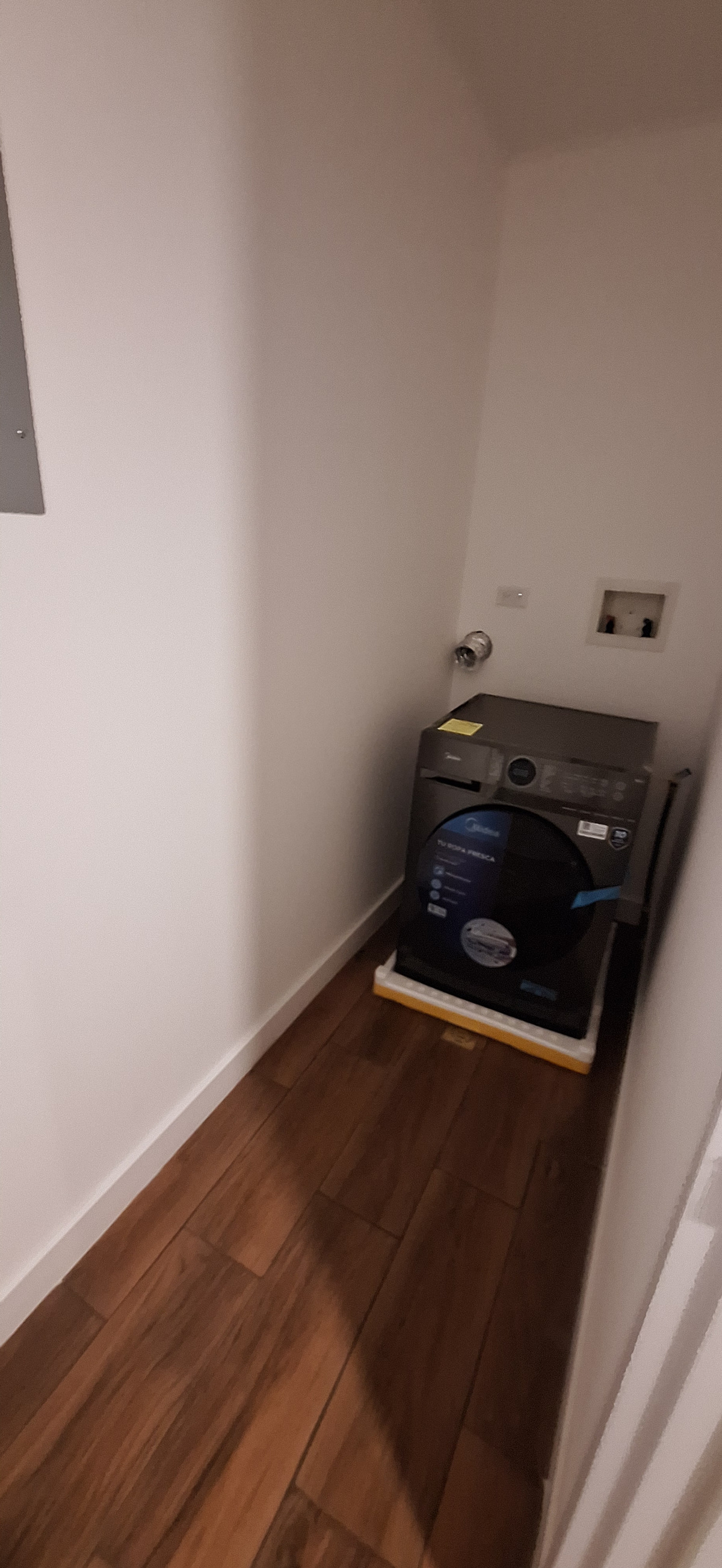 + Equipped kitchen with stove, microwave hood, and refrigerator.