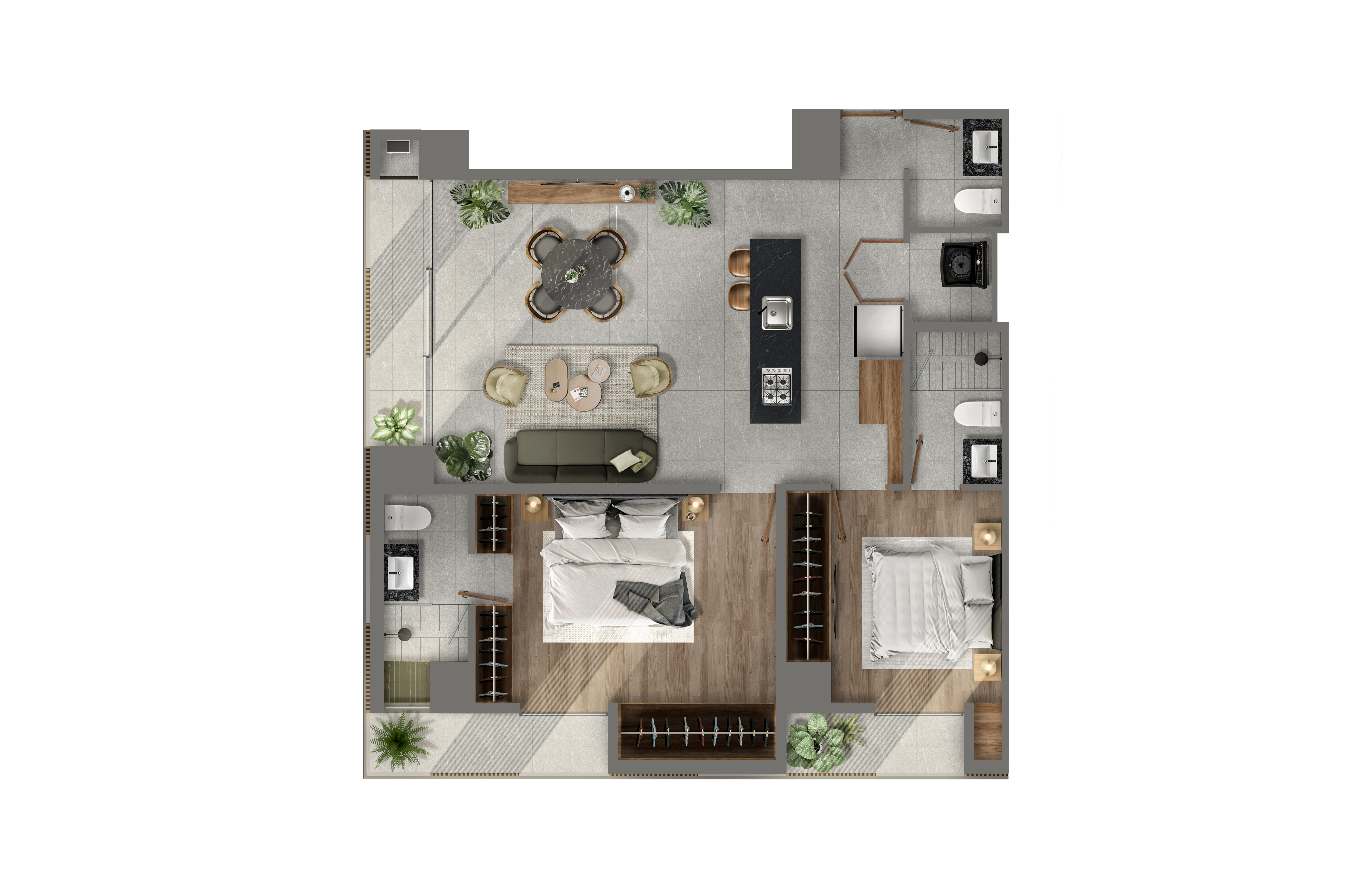 Solo pocas unidades disponibles de 2 recámaras desde 79 m2 hasta 100 m2 (prototipo A y B), diseñadas con acabados premium y espacios funcionales: