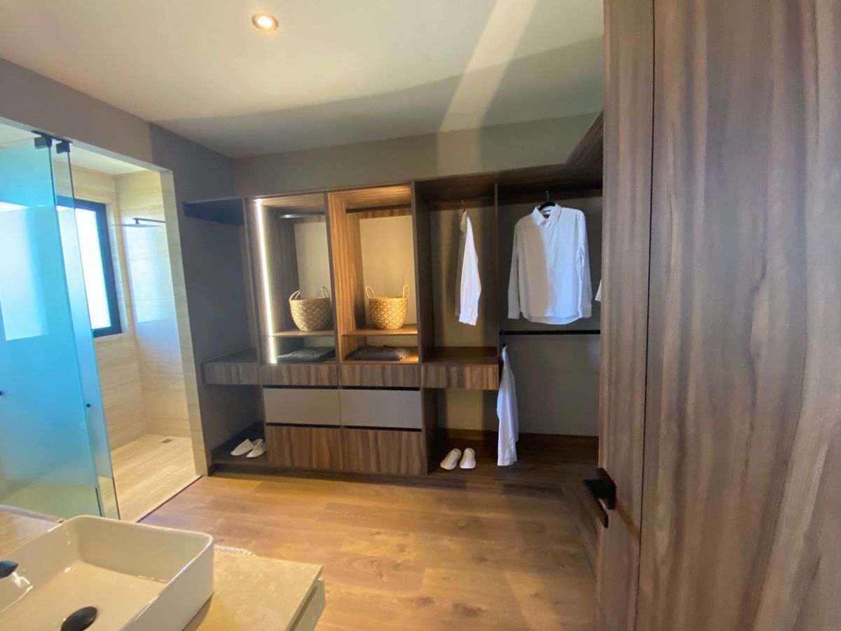 New apartments for immediate delivery and pre-sale, located a few steps from Fray Junípero Serra, surrounded by shopping centers (Wallmart El Refugio, H-E-B, La Comer El Refugio), shopping malls (Paseo Querétaro). They are 3 apartment towers that have a forest in the middle. Each tower has 9 floors, with 8 apartments per floor,. The amenities are on the top floor of each building, with grills, swimming pool, gym. The apartment has a dining room, kitchen, laundry area, full bathroom, TV room, a secondary bedroom and master bedroom with dressing room and full bathroom.